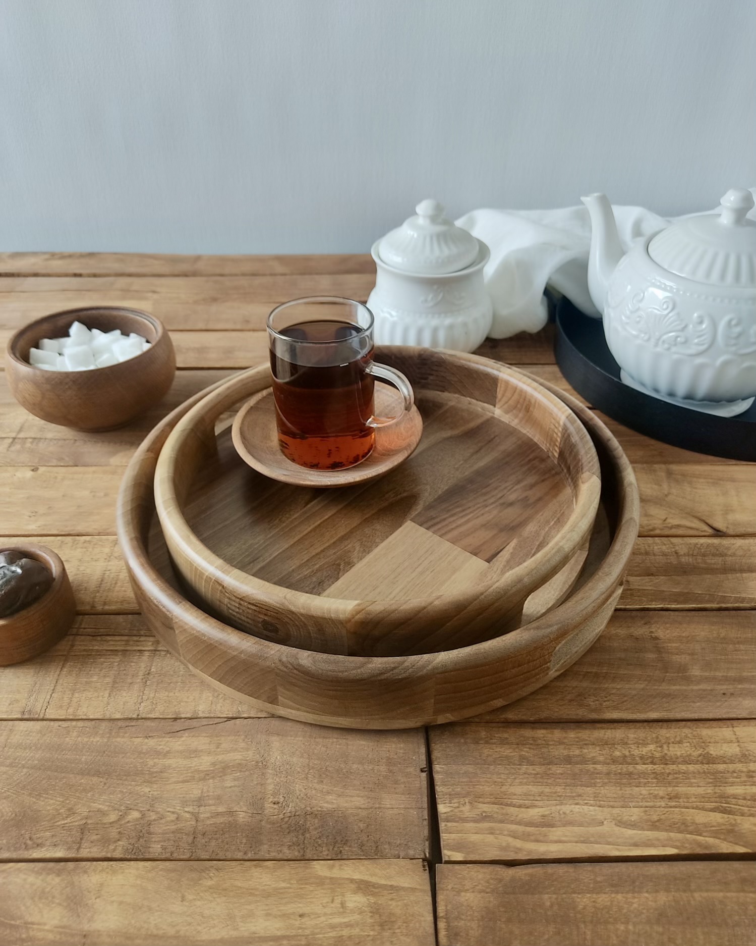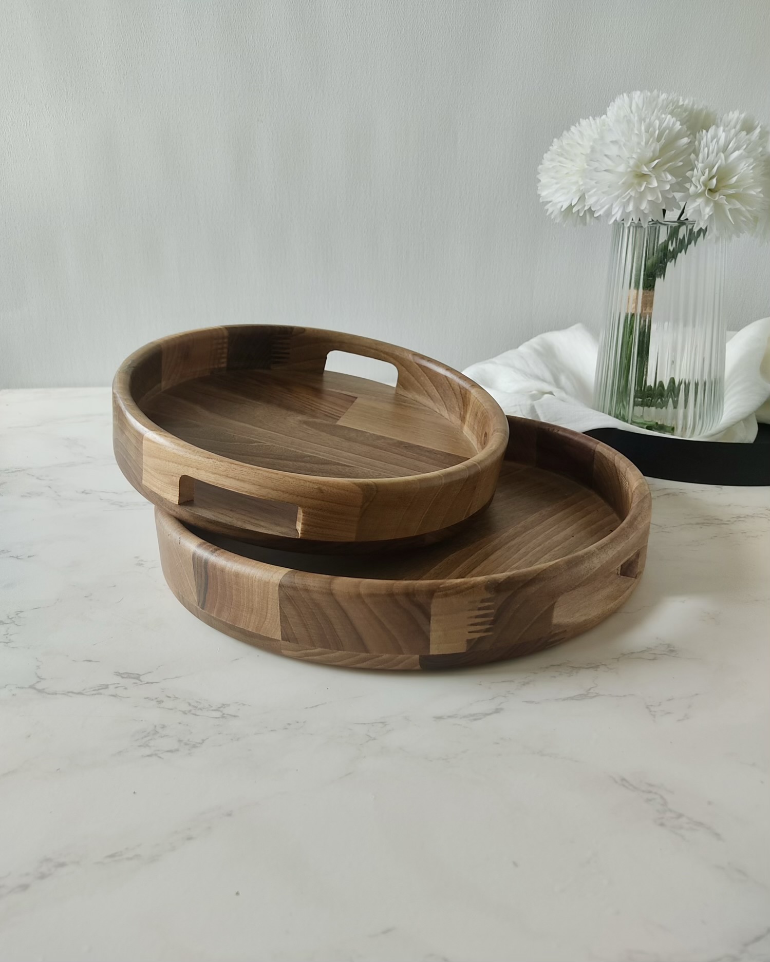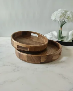 سینی 2 سایز گرد اماهوم چوب گردو