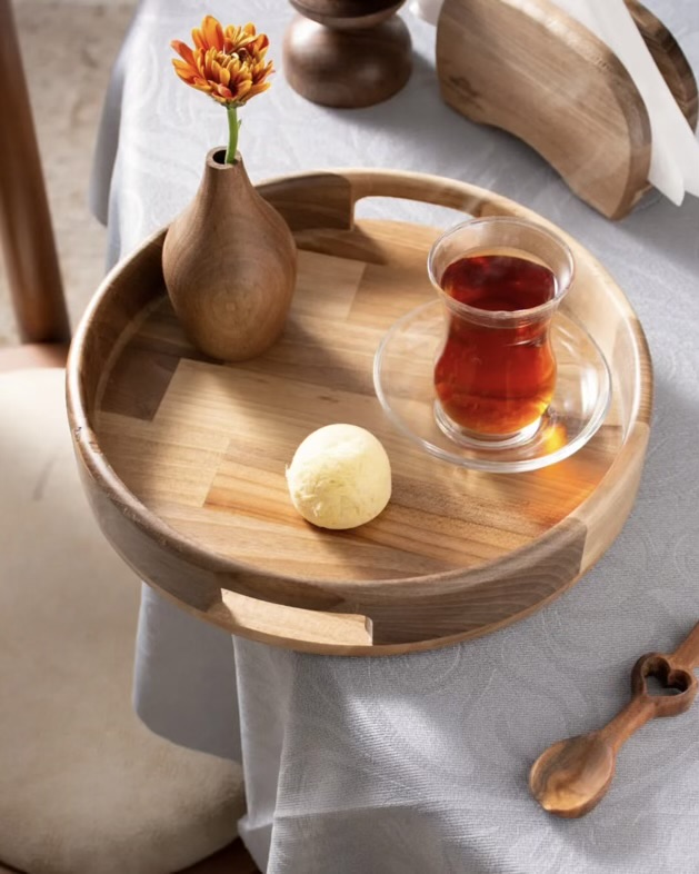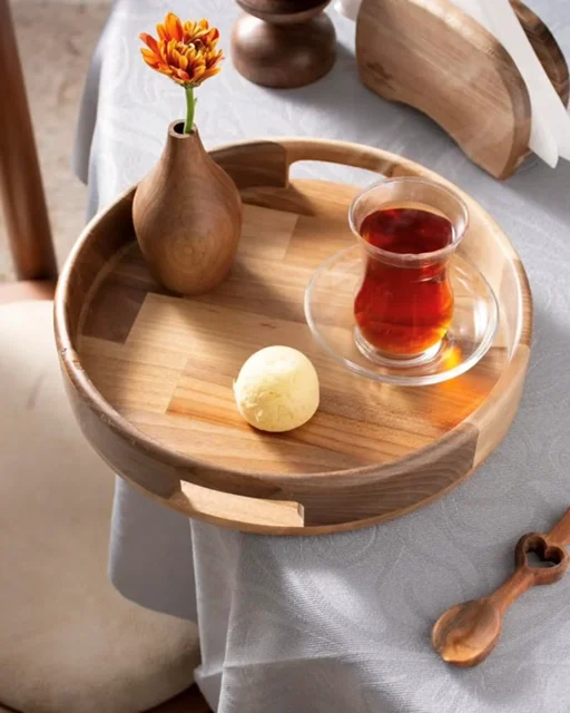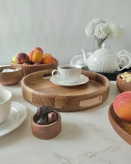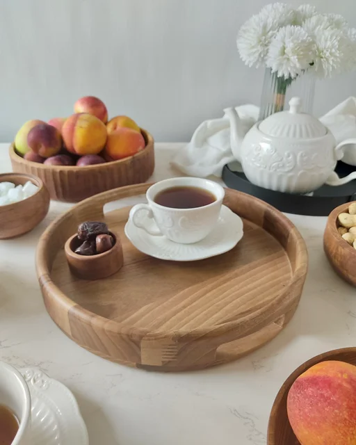 وقتی پذیرایی فقط چیدن خوراکی نیست و دنبال حس گرم و صمیمی طبیعتی، این سینی گرد از چوب خالص گردو، همون انتخابیه که به میزت شخصیت میده. طراحی مینیمال و بافت زنده چوب، باعث میشه هر سینی، داستان و روح خودش رو داشته باشه.