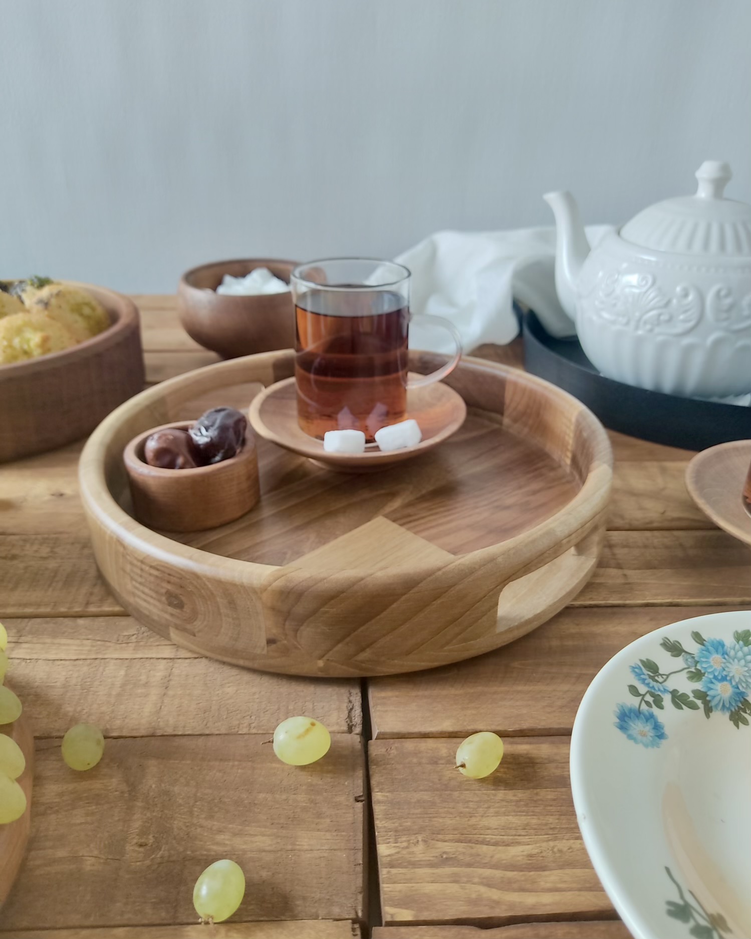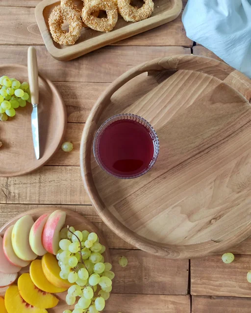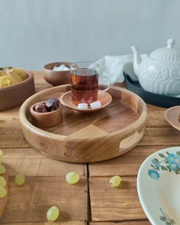هر سینی از یکتکه چوب گردو ساخته شده، با رگههای طبیعی که در هیچ دو سینی شبیه هم نیست. رنگ گرم و بافت زندهاش، حس آرامش و اصالت رو به هر مهمانی یا دورهمی میاره.