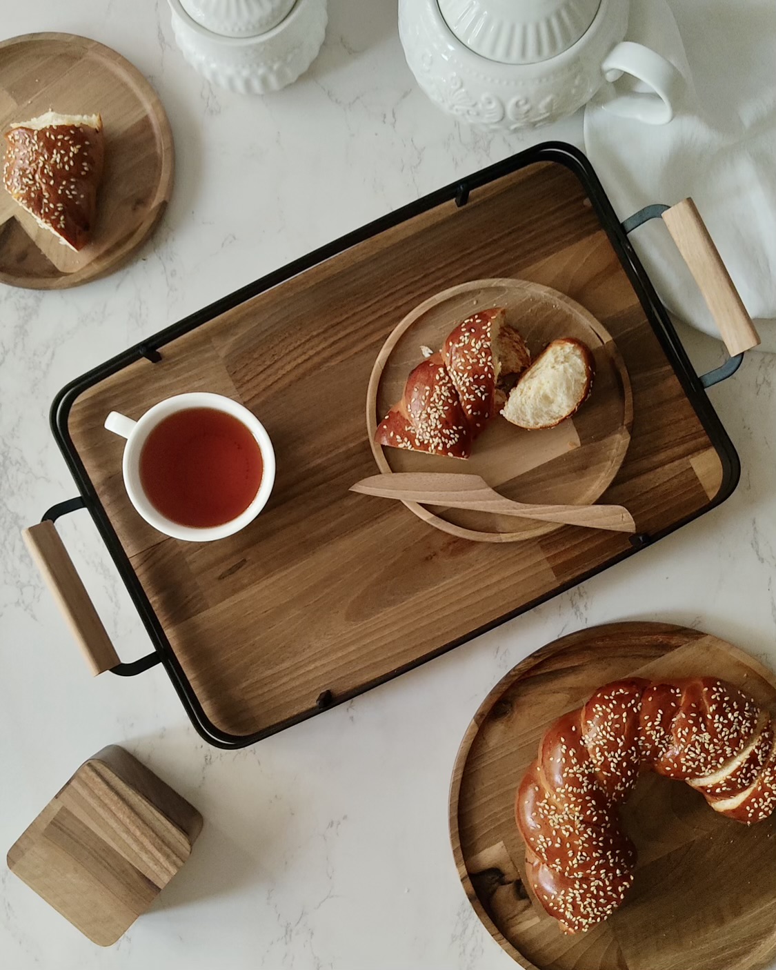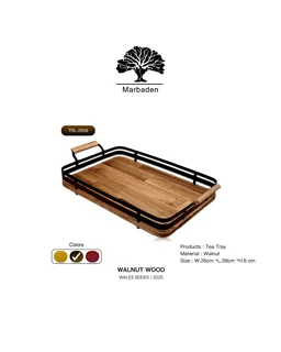 هر سینی از این ست، با تکههای واقعی و زیبا از چوب گردو ساخته شده؛ چوبی با رگهها و بافتهای خاص که توی هیچ دو تا سینی مثل هم نیست.