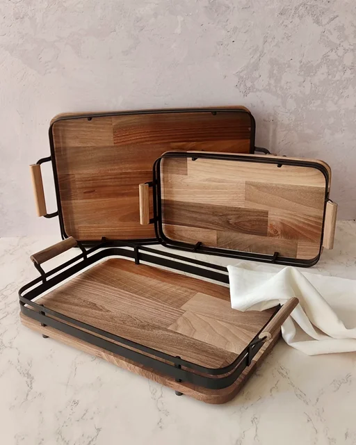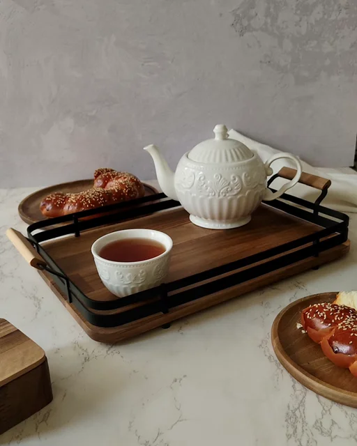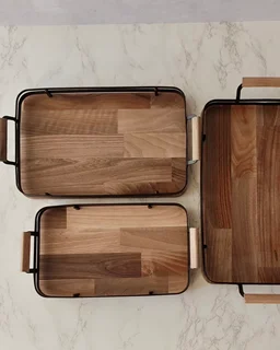 اگه دنبال یه ست پذیرایی شیک، خاص و موندگار میگردی، این سینیهای چوب گردو با طراحی صنعتی–مدرن دقیقاً همون چیزیه که لازم داری.