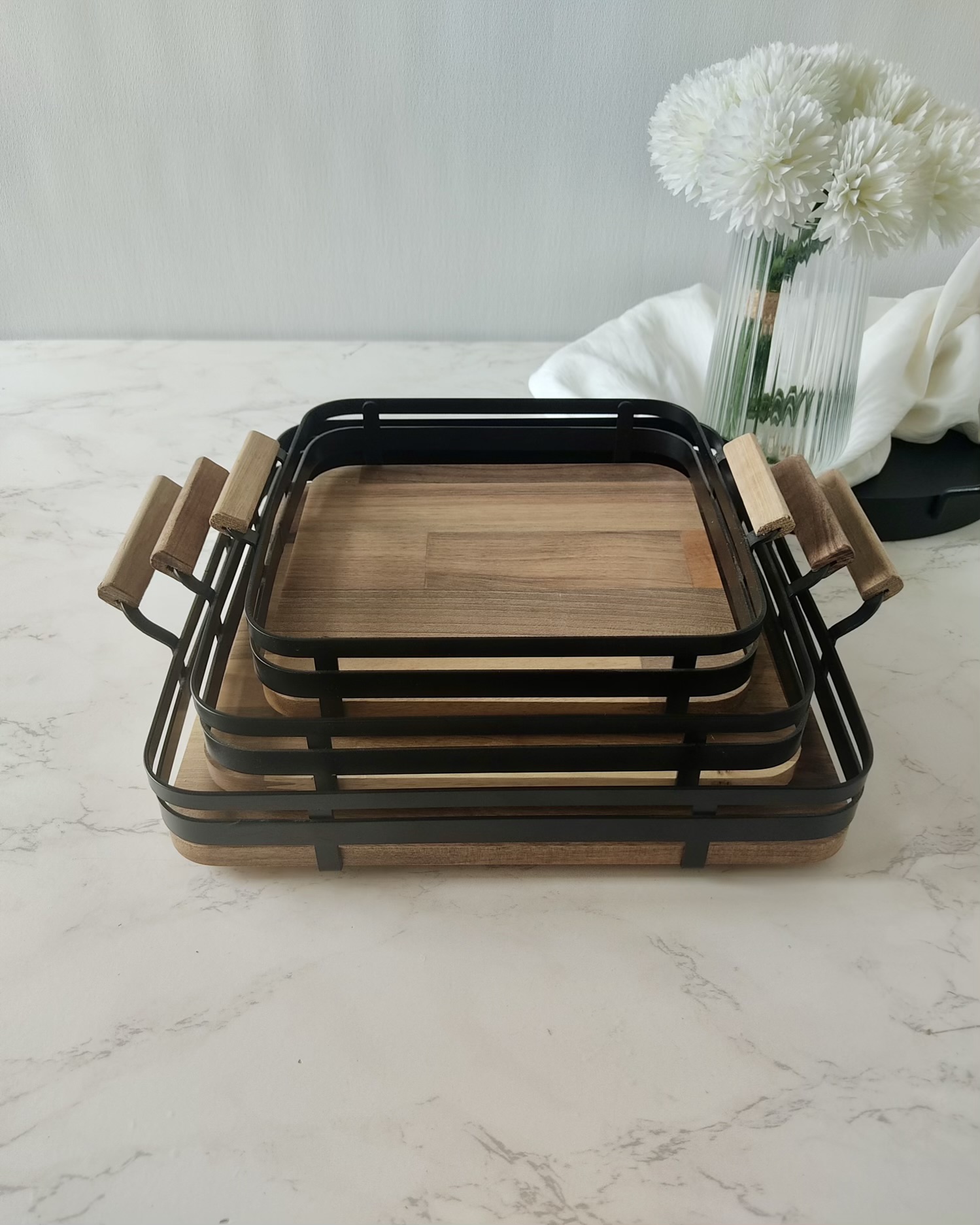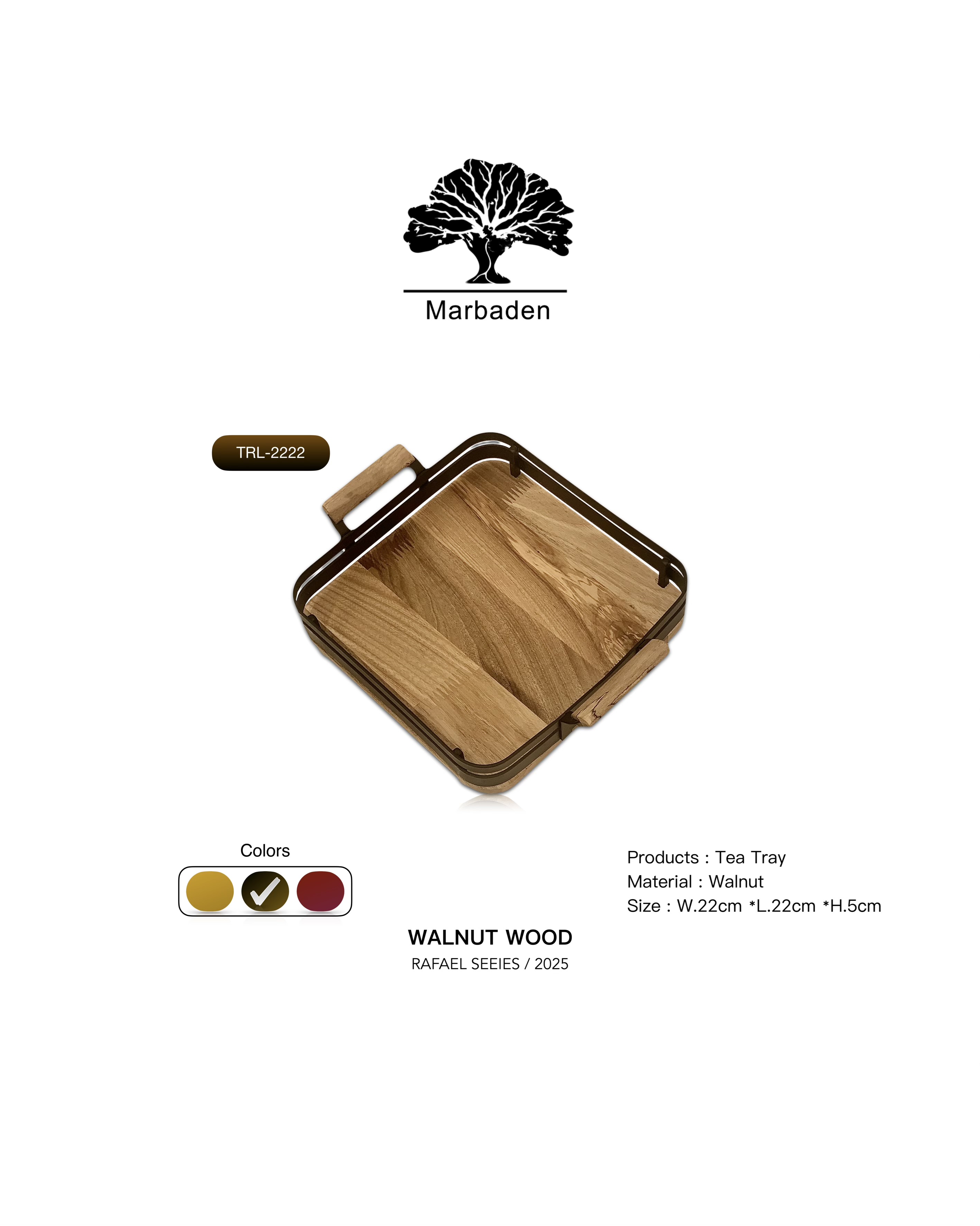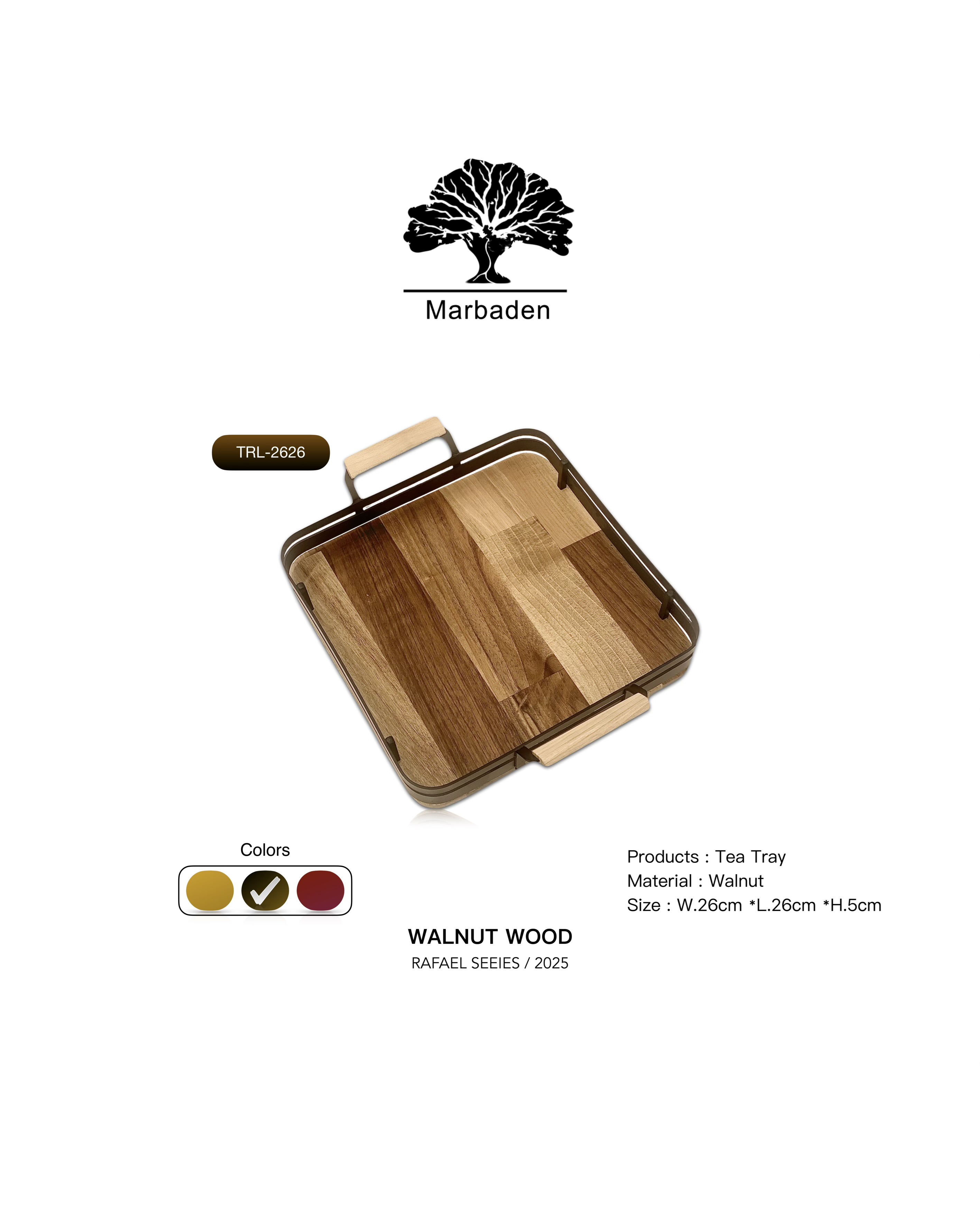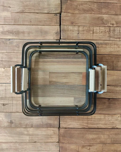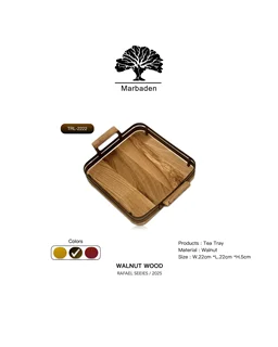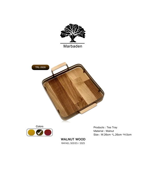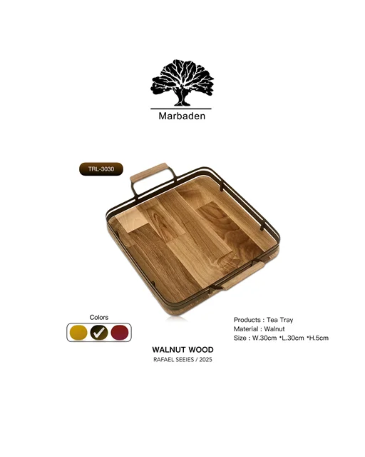 سینی مربع چوب گردو با فریم فلزی صاف