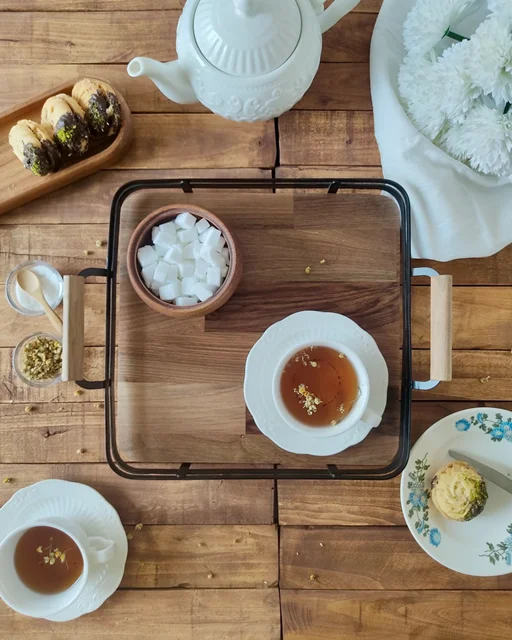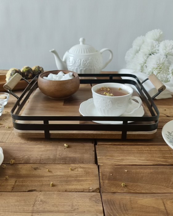چه برای سرو چای و قهوه، چه برای چیدن تنقلات، یا حتی به عنوان پایه دکور روی میز — این سینی، همیشه شیک و کاربردیه.