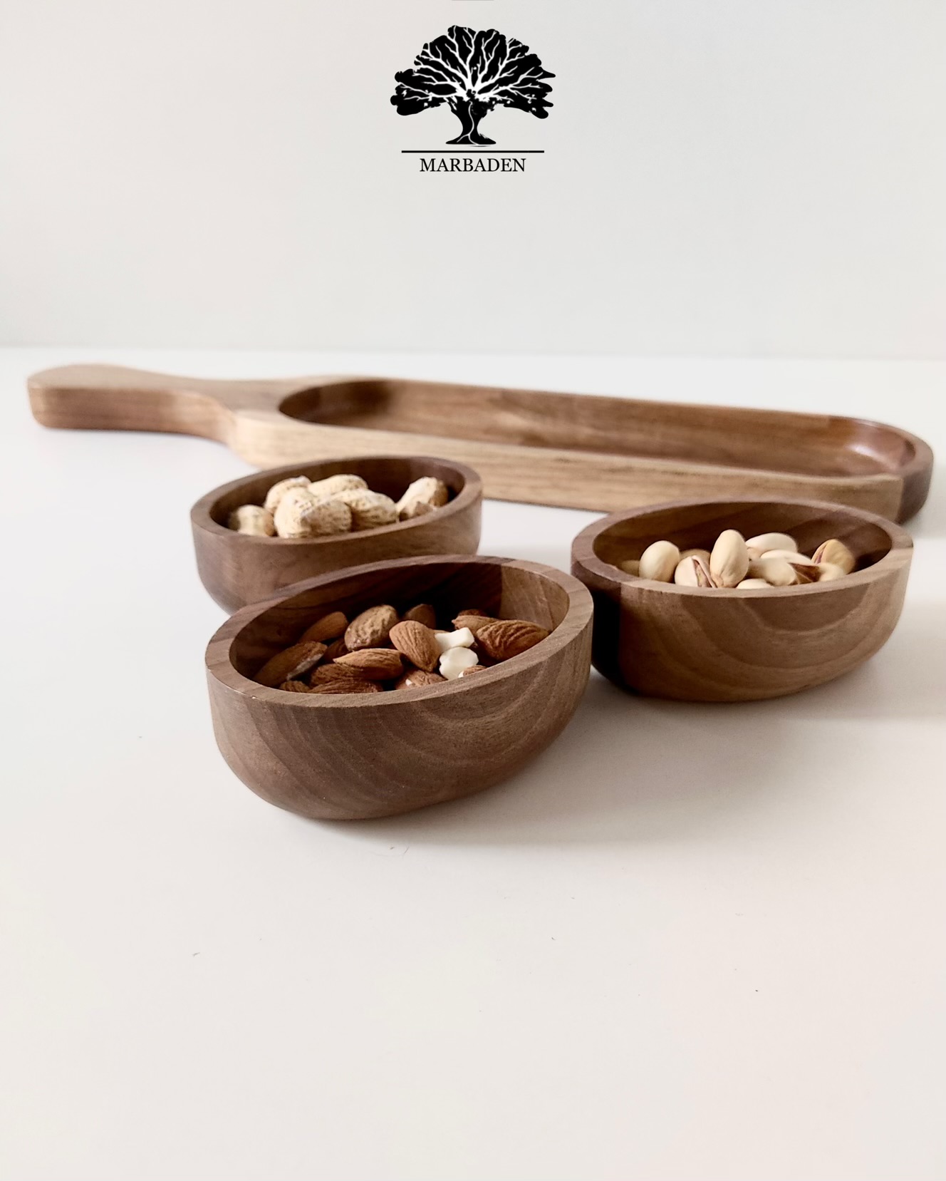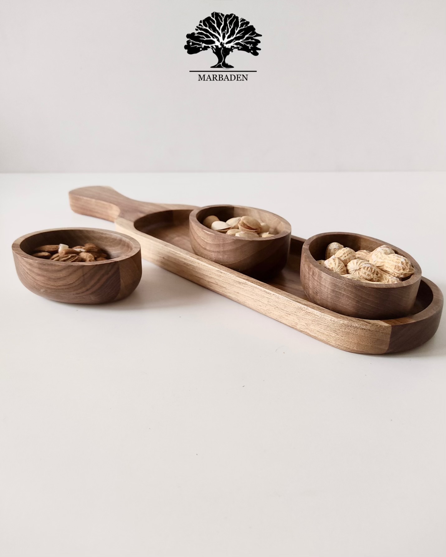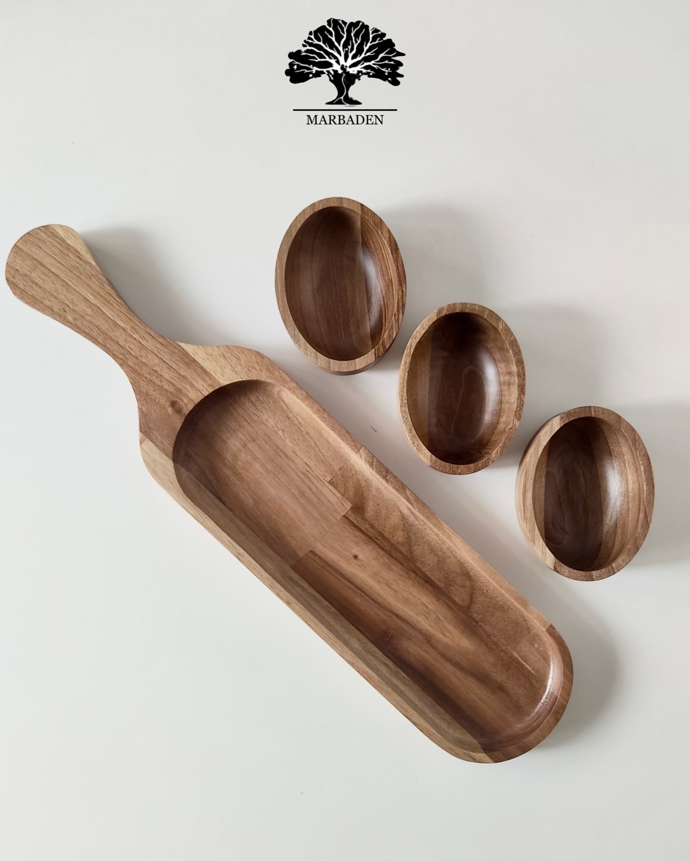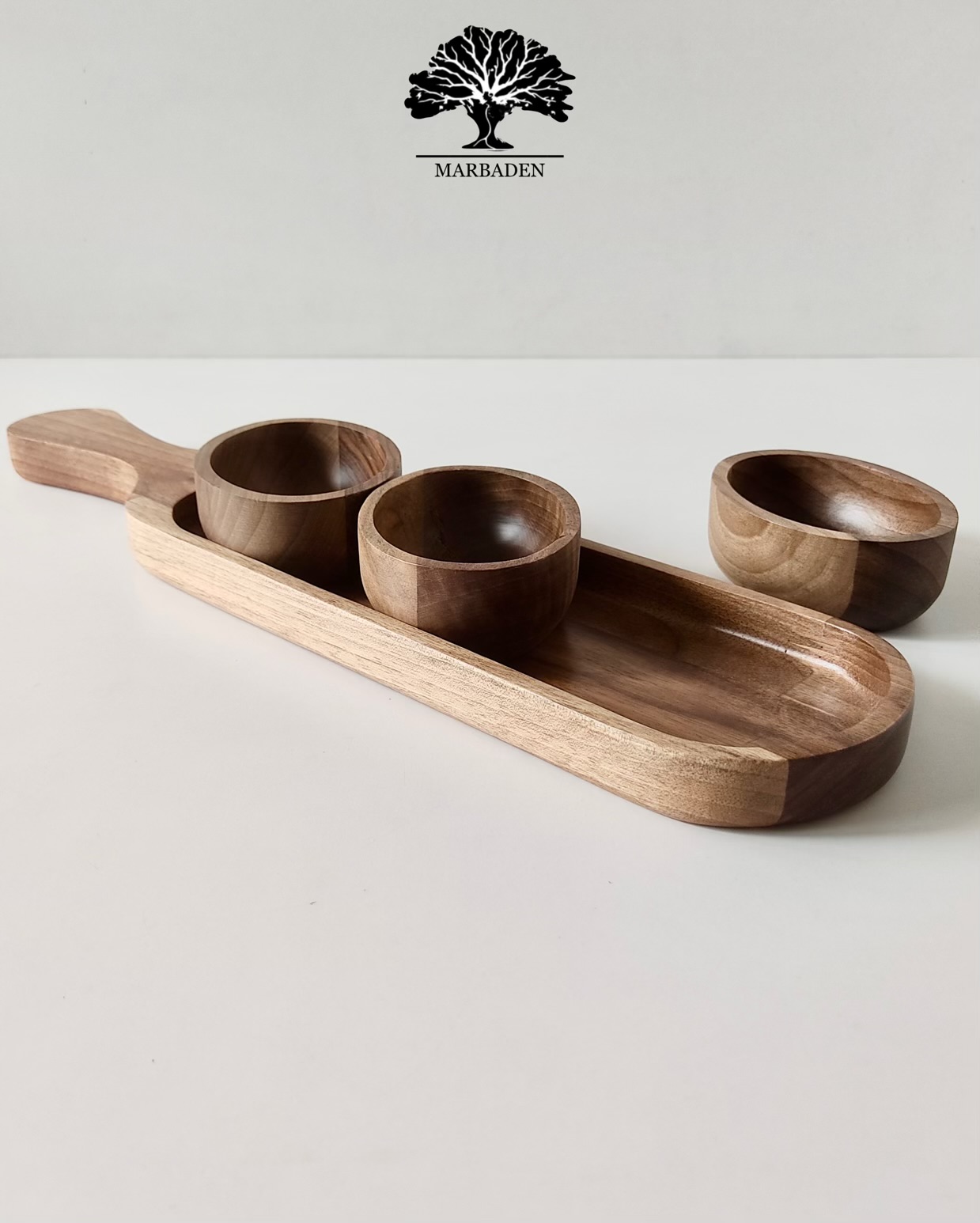 Walnut Serving Paddle with 3 Bowls |WN-Ama/5608