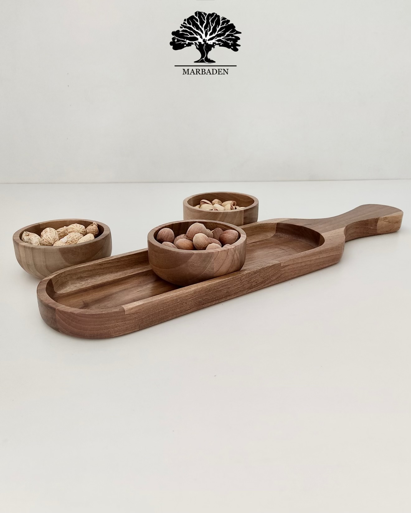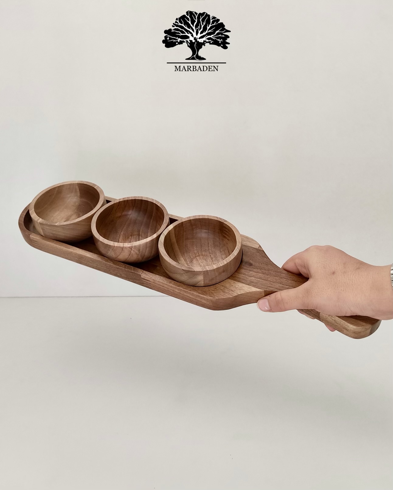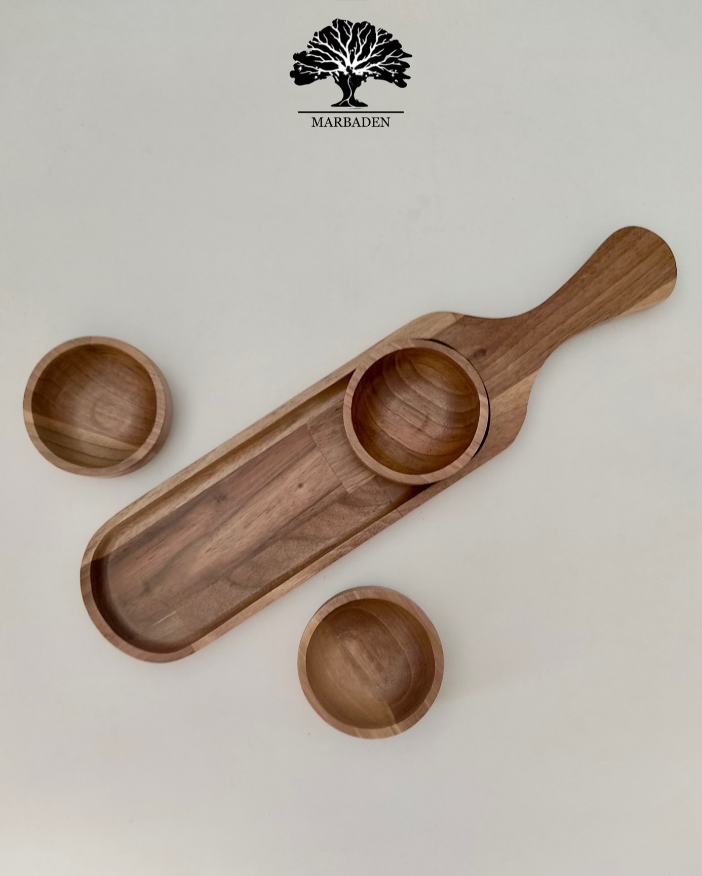 Walnut Serving Paddle with 3 Bowls |WN-Ama/5970