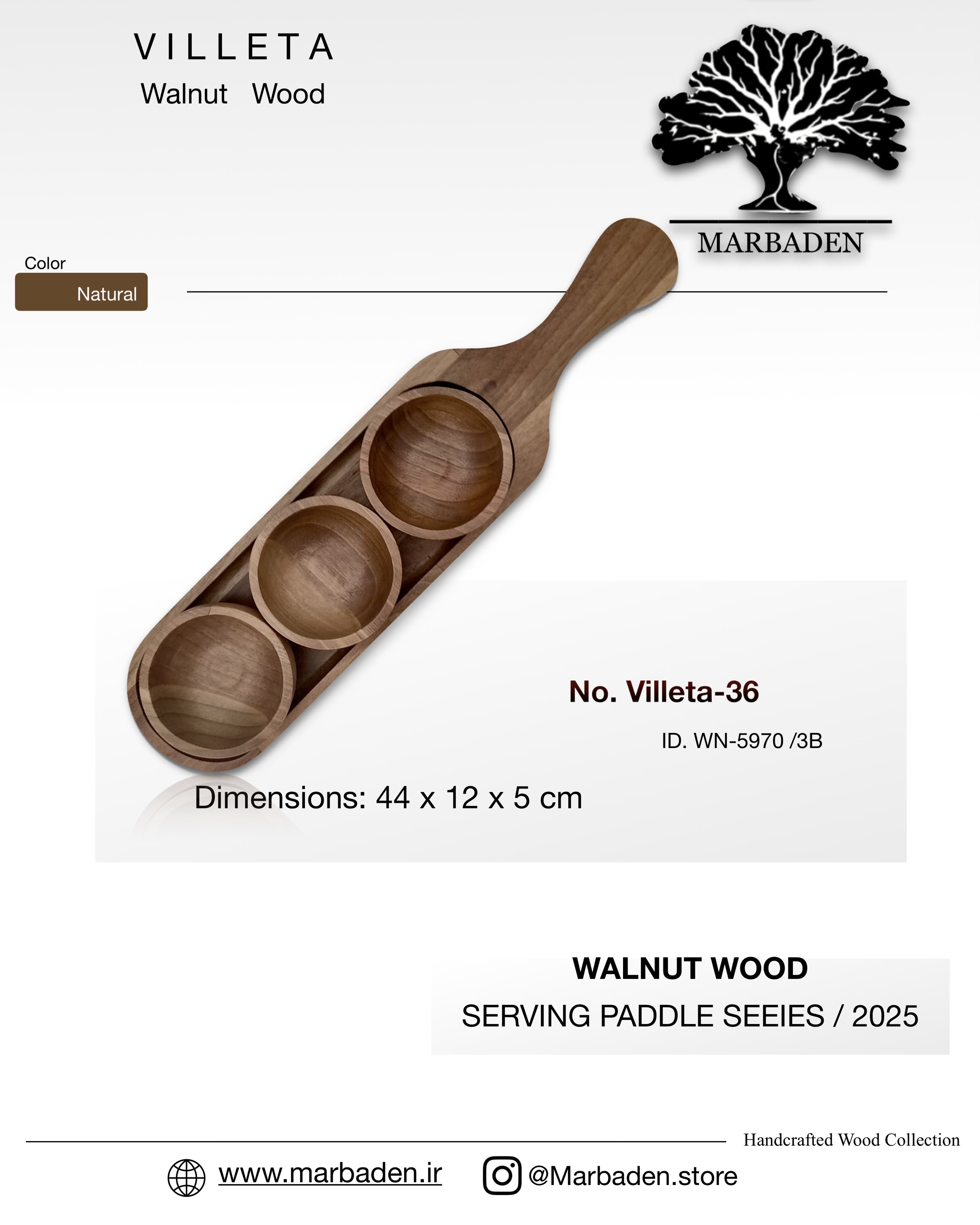 اردو چوبی تخته راکتی با سه پیاله گرد (چوب گردو) Villeta