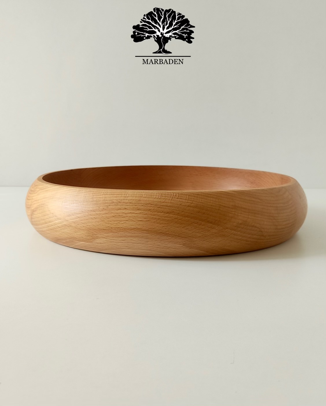 کاسه چوبی بزرگ مدل خمرهای – قطر ۳۵ سانتیمتر (چوب راش طبیعی)