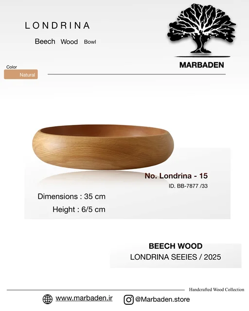 کاسه چوبی مدل خمره ای قطر 35 سانتیمتر (چوب راش) Londrina-15