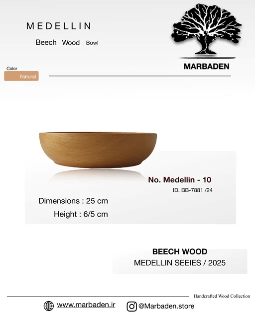 کاسه چوبی مدل ساده قطر 25 سانتیمتر (چوب راش) Medellin -7