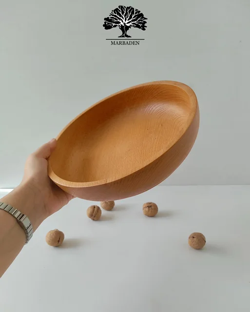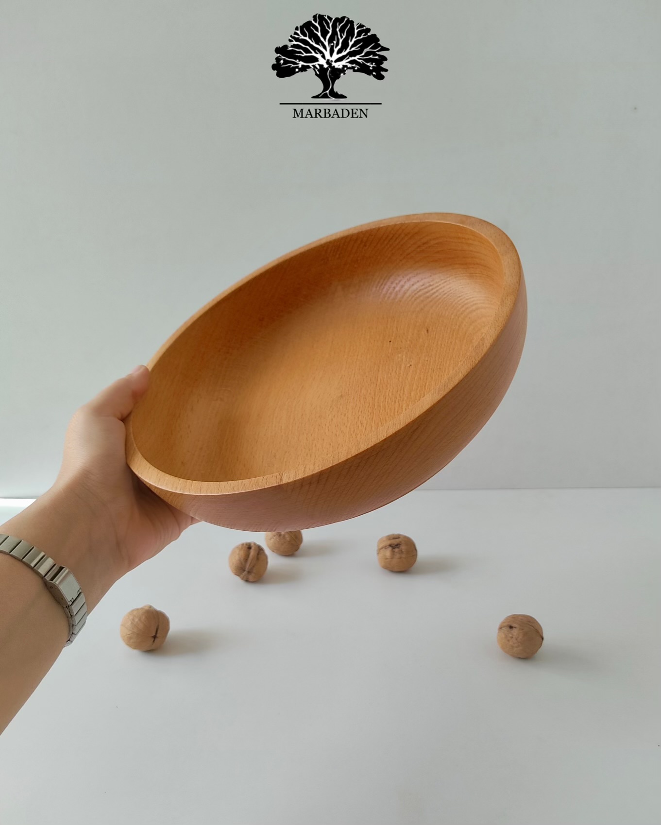 🍀 کاسه چوبی قطر ۲۵ سانتیمتر – ساختهشده از چوب طبیعی راش اروپایی
