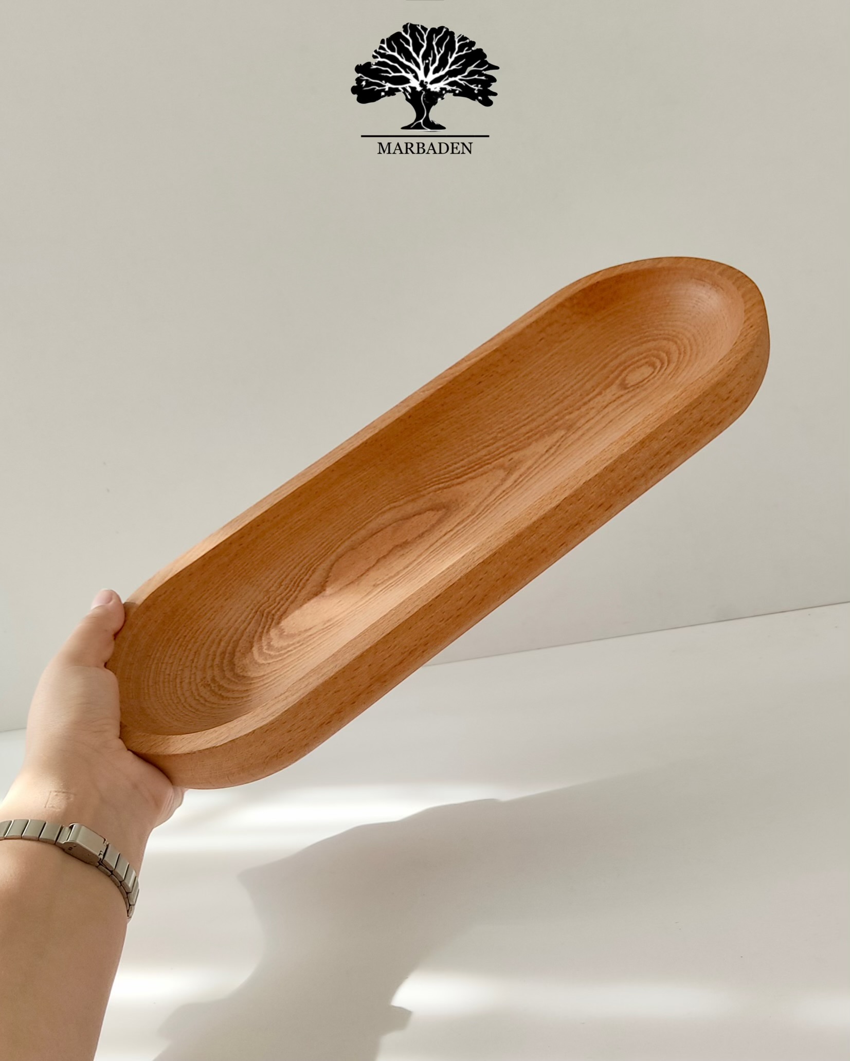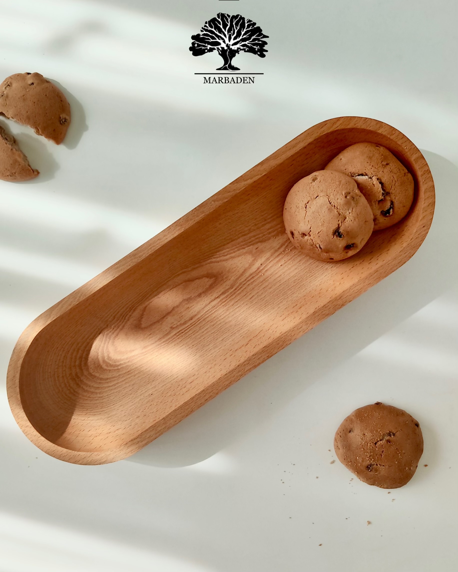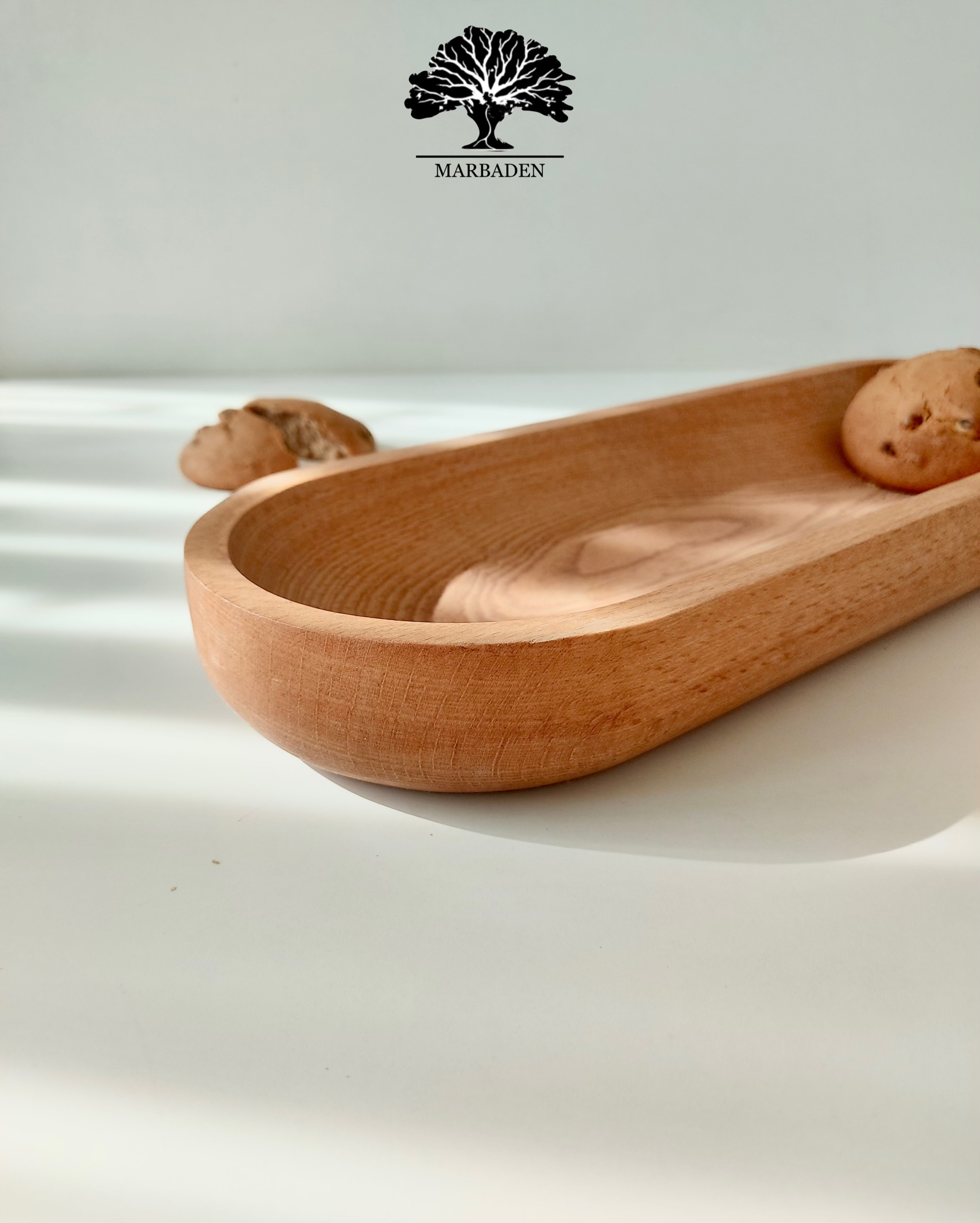 رولتخوری چوبی بیضی باریک ، انتخابی شیک و حرفهای برای سرو انواع رولت، کیک و شیرینی است.