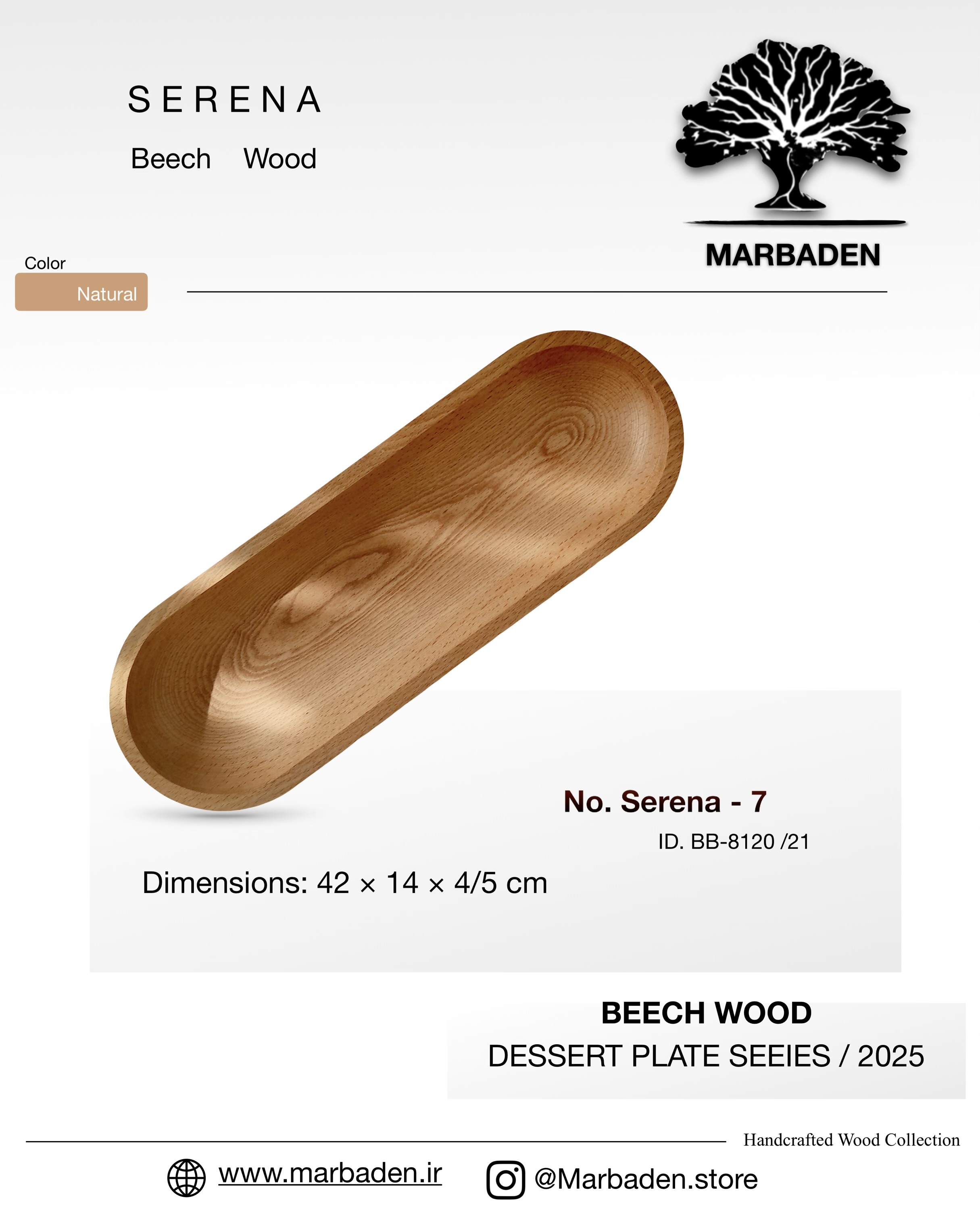رولت خوری مدل بیضی تک خانه (چوب راش) Serena-7