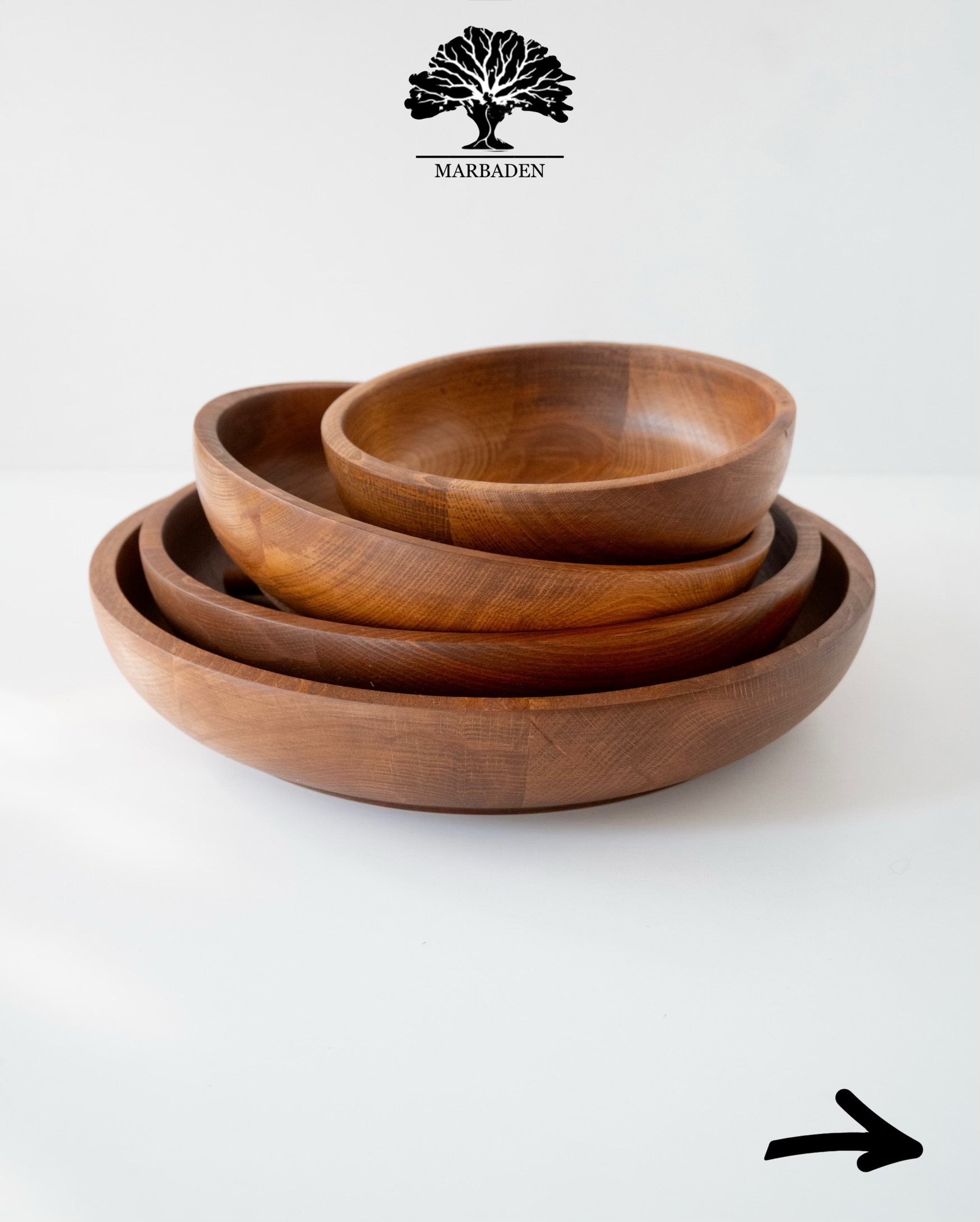 فرم باز و انحنای نرم دیوارهها، ظاهر کاسهها را سبک، مینیمال و چشمنواز کرده و در عین حال گرمای اصیل چوب طبیعی را حفظ میکند.