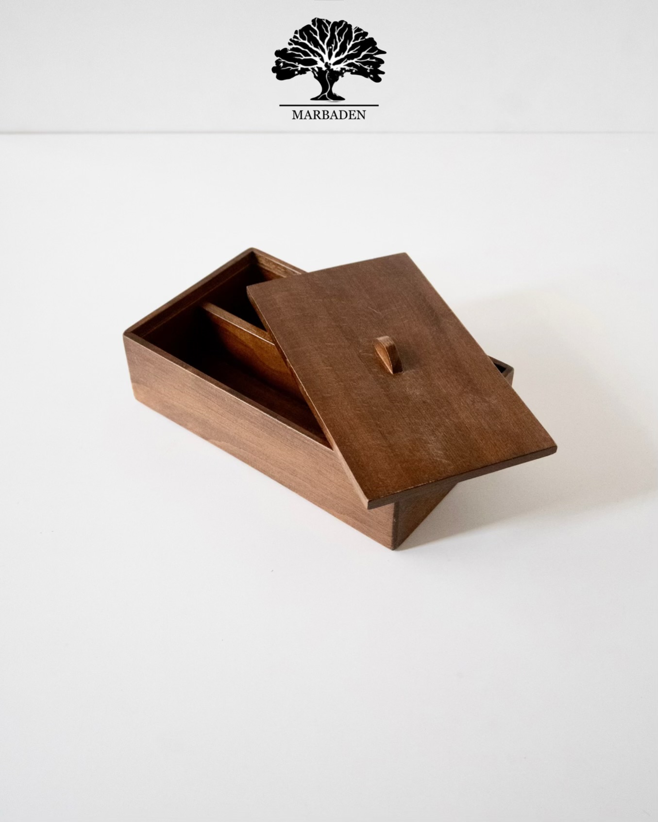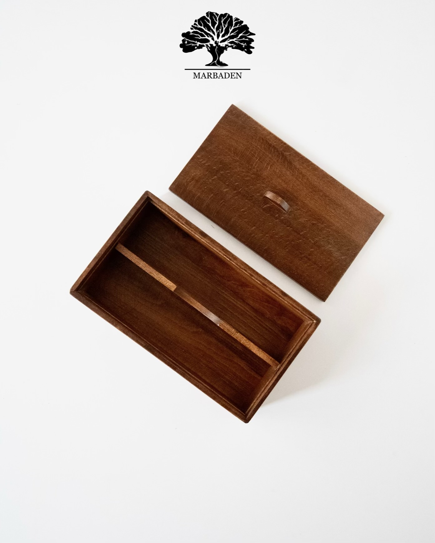 مدل مستطیلی با ظرافت و کیفیت ساخت عالی، مجهز به درب چوبی مقاوم و نرم که به آسانی باز و بسته میشود. تمامی لبهها و جزئیات با پرداخت دقیق و حرفهای انجام شده تا حس نرمی و لذت در استفاده روزمره ایجاد کند.