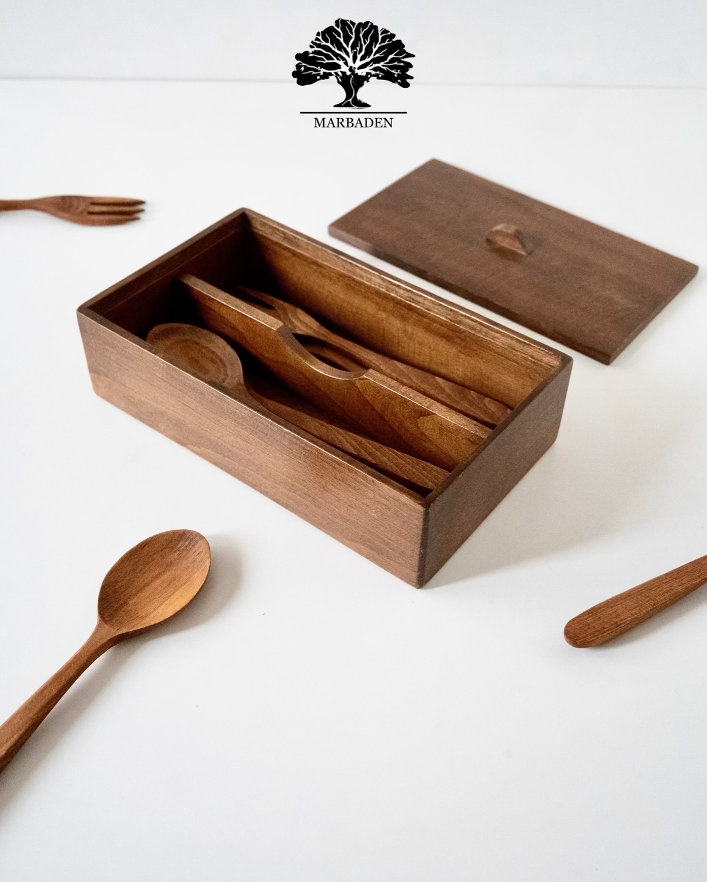 ایدهآل برای مرتبسازی قاشق و چنگال روی میز غذا، زیباسازی آشپزخانه، یا به عنوان یک عنصر دکوری گرم و چشمنواز که با دیگر لوازم چوبی هماهنگی کامل دارد.
