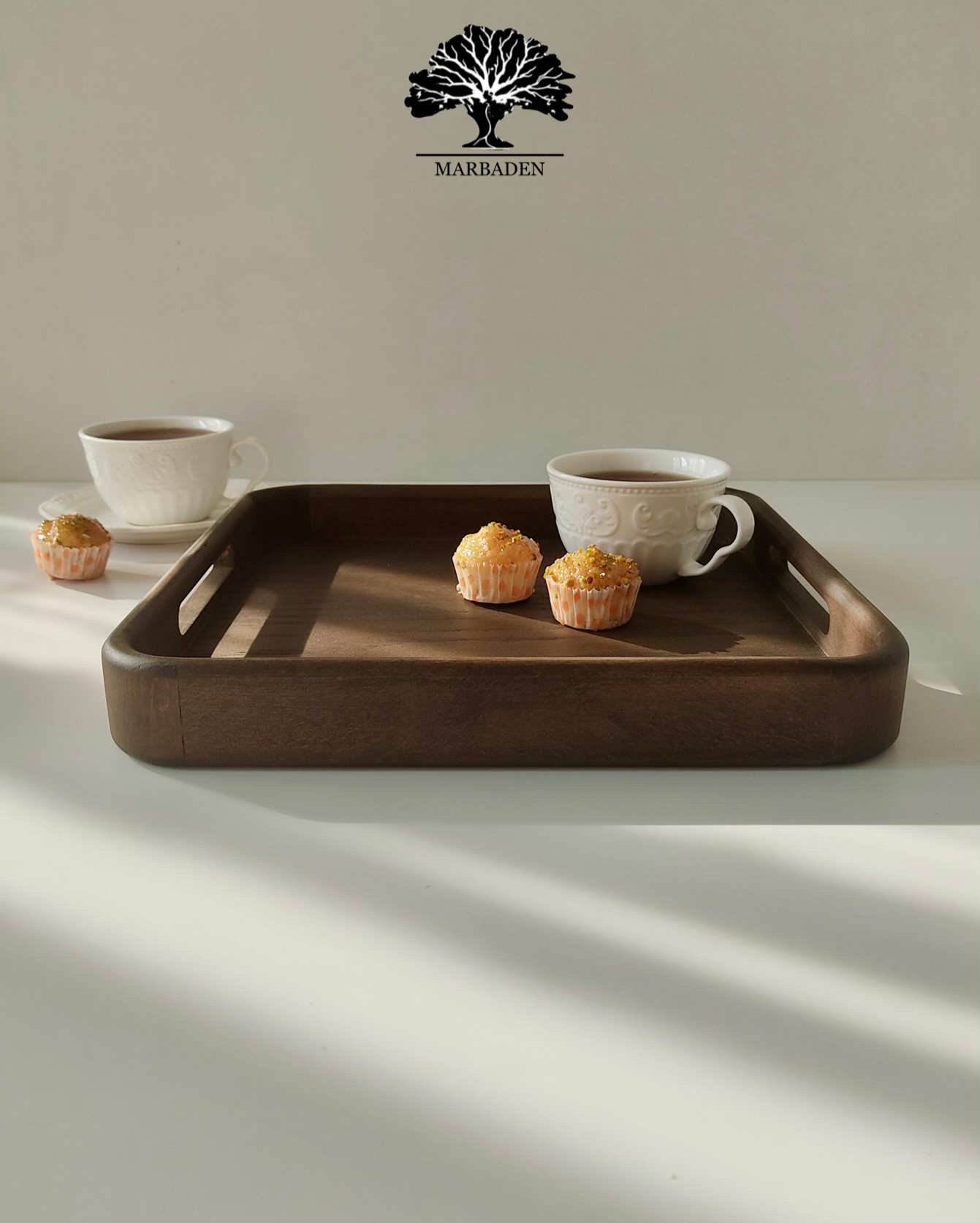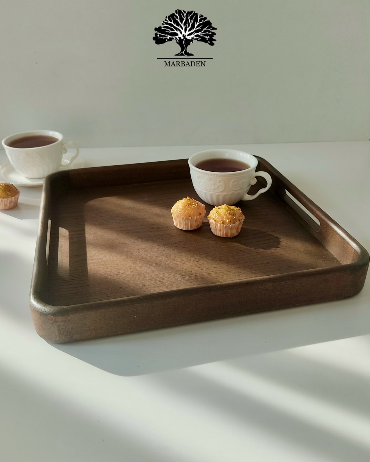 سینی چای مدل مربع دستساز (چوب راش فندقی) 4-Hamina