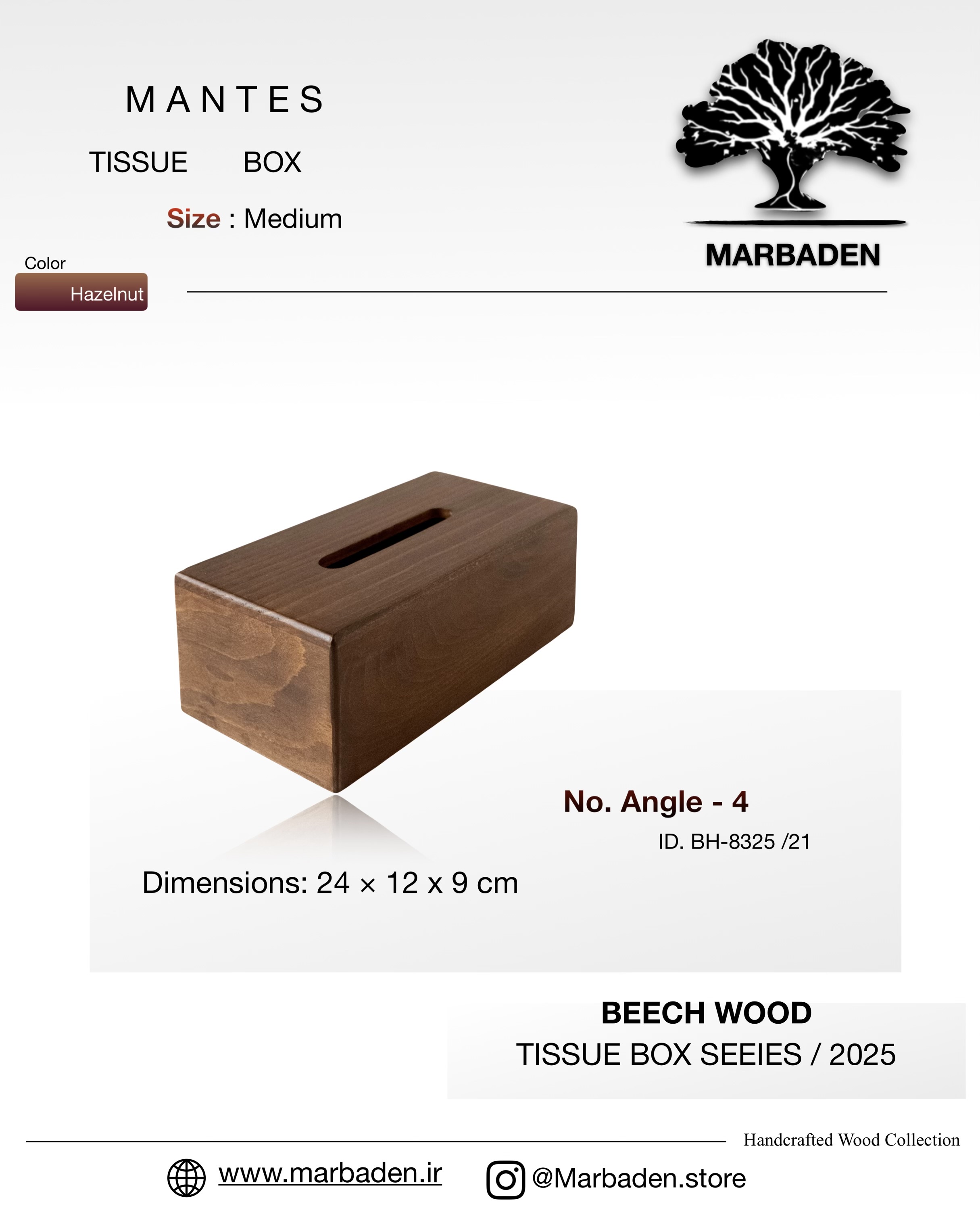 جای دستمال رومیزی چوبی مستطیل ماربادن (چوب راش فندقی) Angle-4