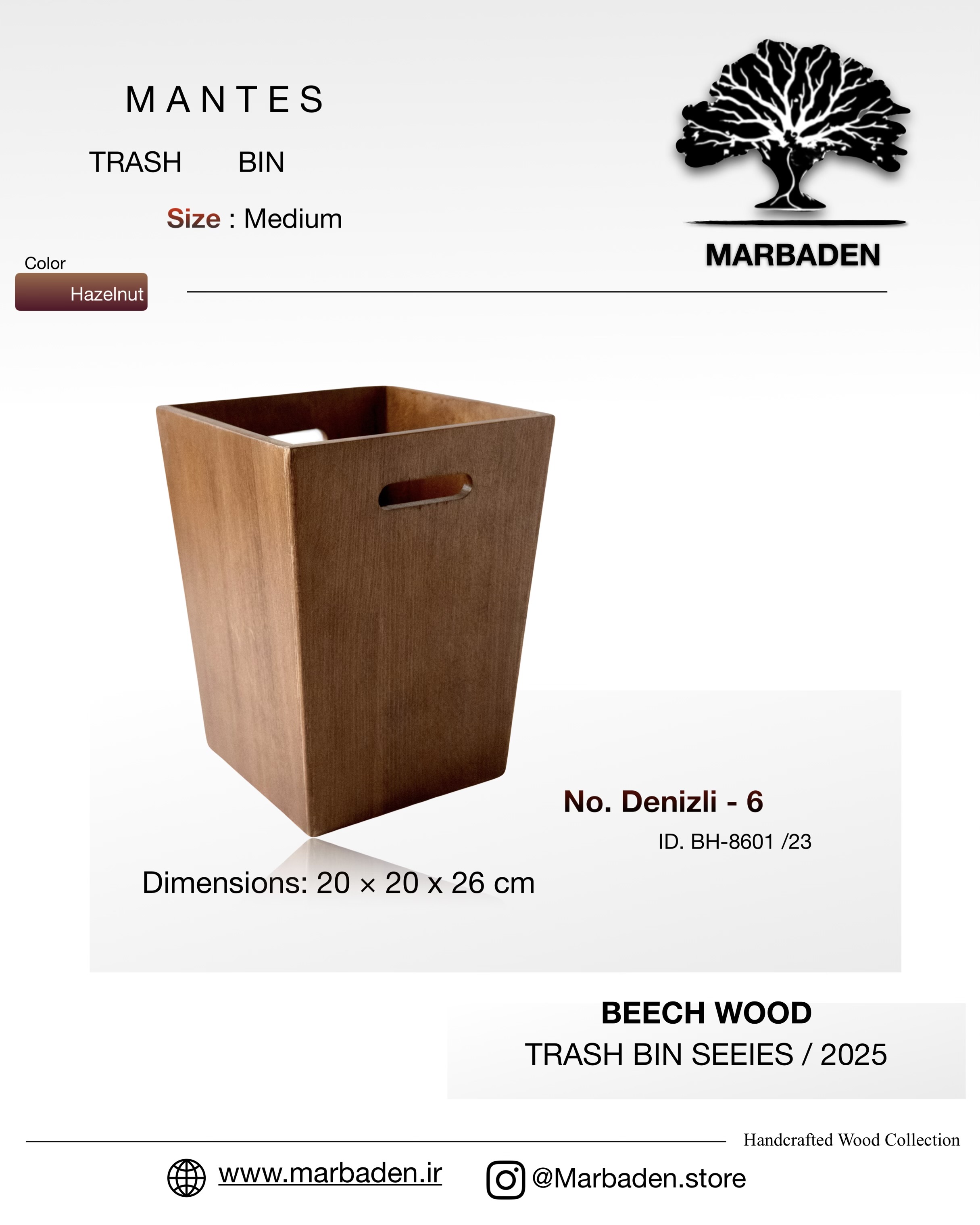 سطل زباله و جای دستمال چوبی ماربادن (چوب راش فندقی) Denizli-6