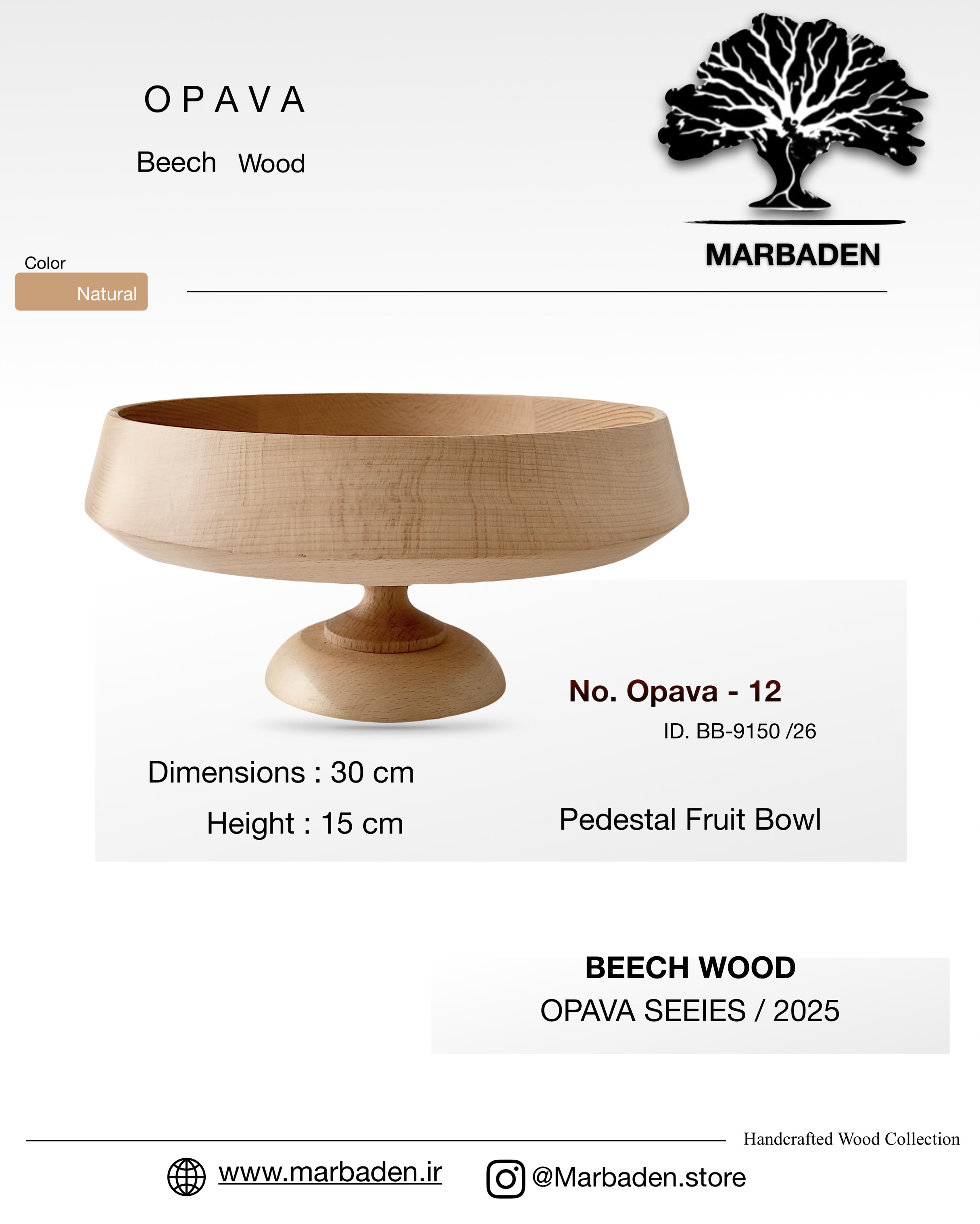 میوه خوری مدل الماسی پایه کوتاه قطر 30 (چوب راش) Opava-12