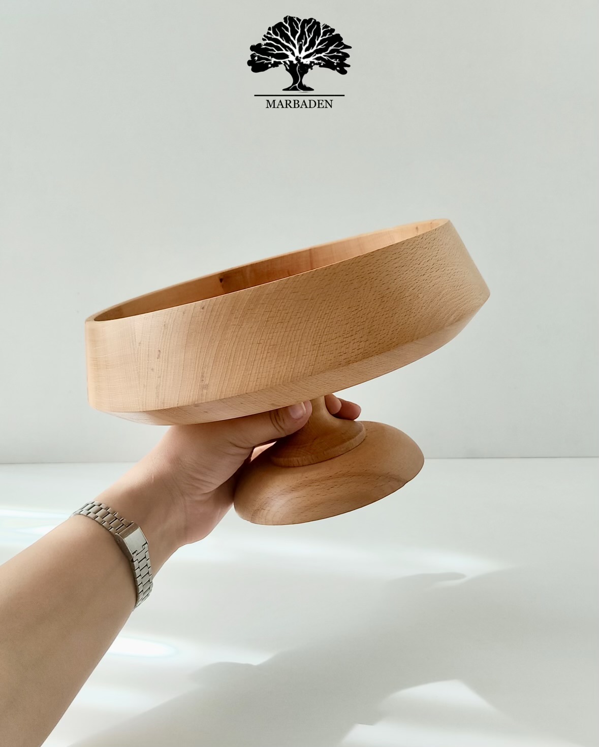 پایهی گرد از چوب راش طبیعی علاوه بر ایجاد تعادل، ارتفاعی جذاب به ظرف میدهد و باعث میشود بیشتر دیده شود.