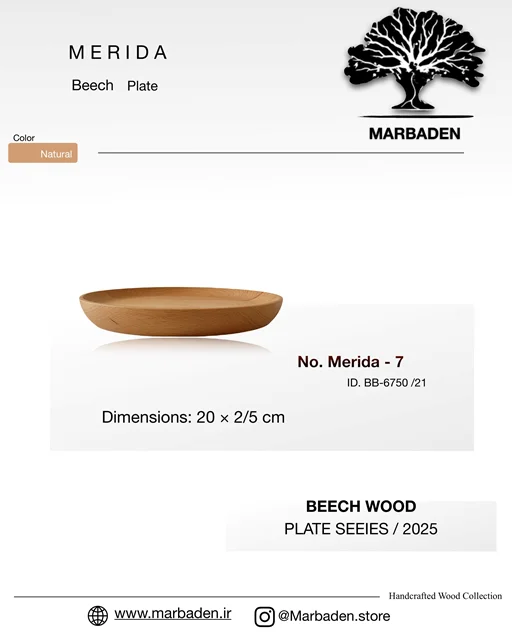 بشقاب چوبی مدل ساده قطر 20 سانتیمتر (چوب راش) Merida -7