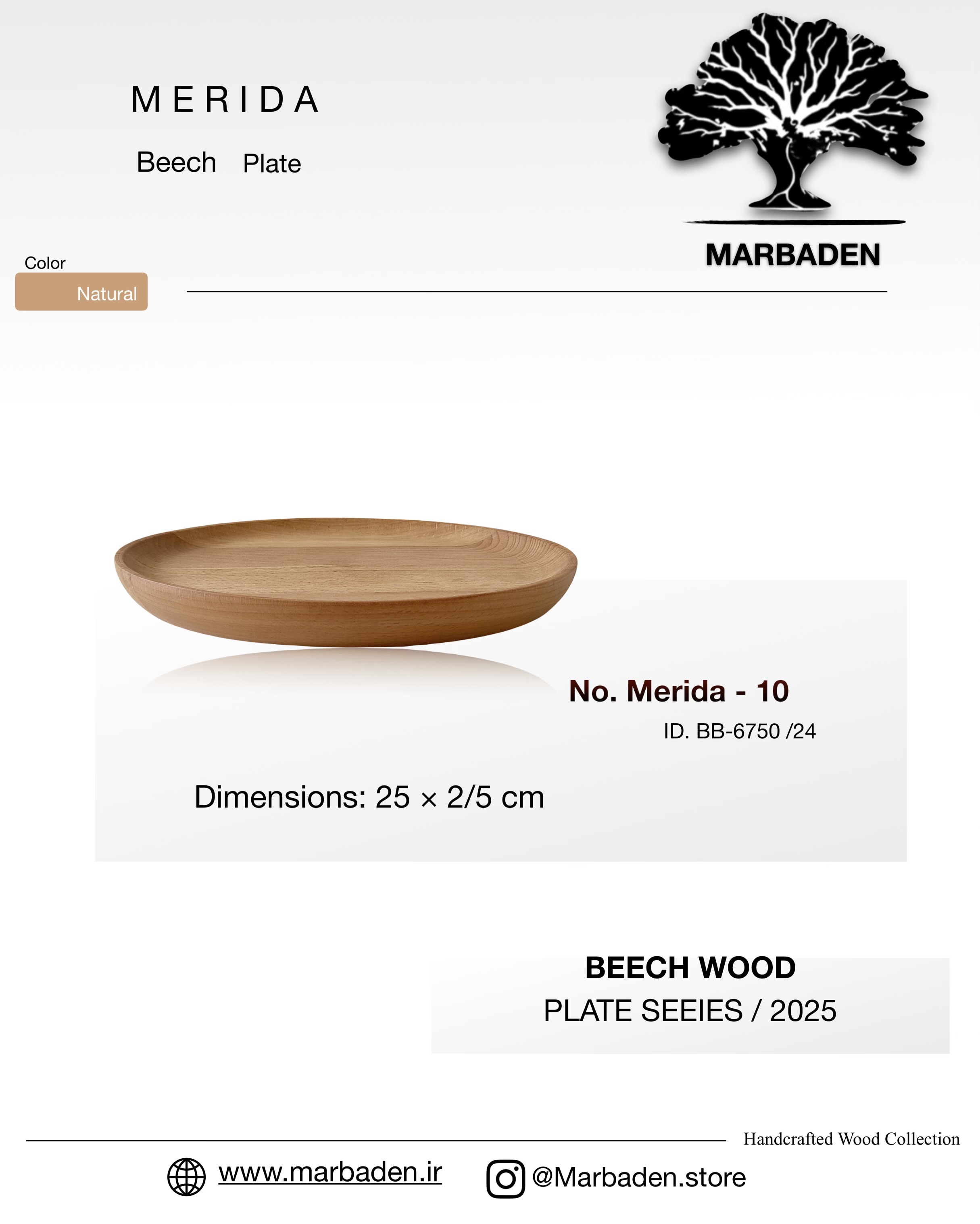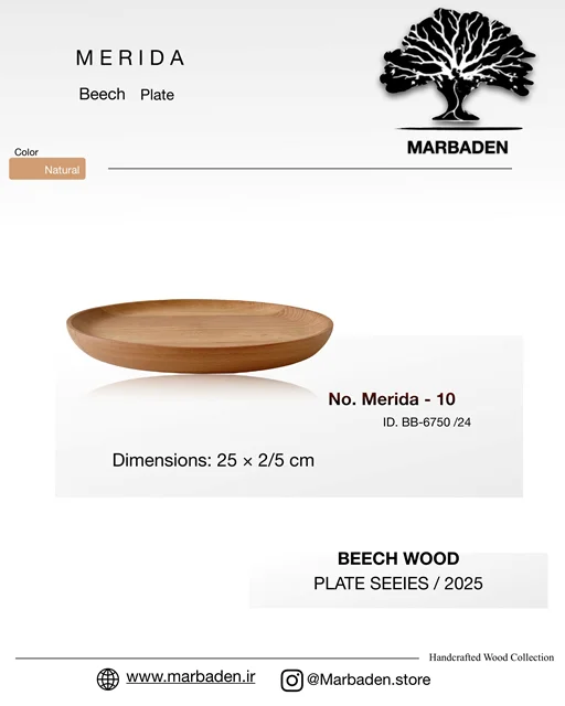 بشقاب چوبی مدل ساده قطر 25 سانتیمتر (چوب راش) Merida -10