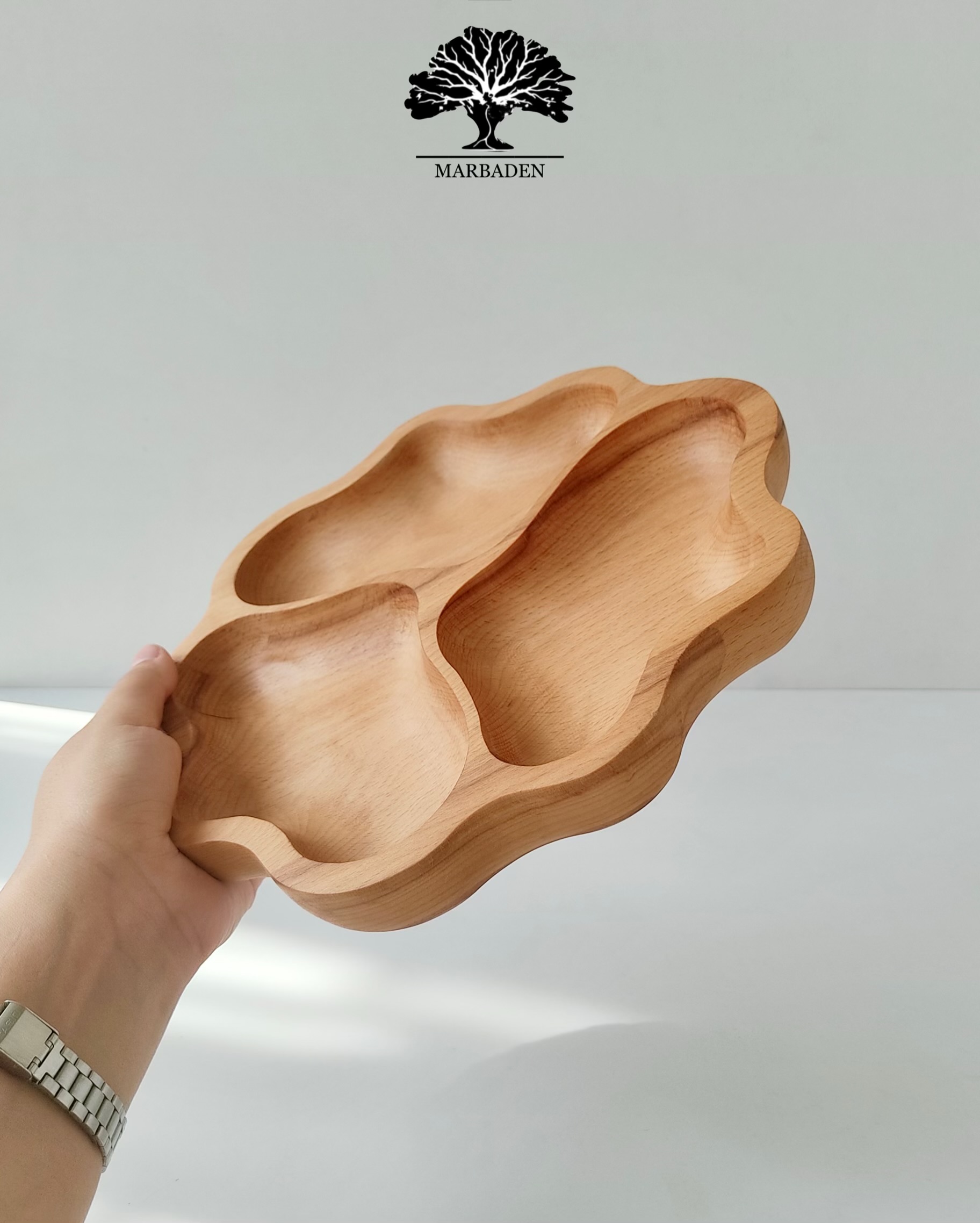 حس واقعی چوب طبیعی، فرم گلمانند و تراشهای نرم این اردوخوری باعث میشود هم برای دکور جذاب باشد و هم برای سرو، یک انتخاب چشمگیر و خاص به حساب بیاید.