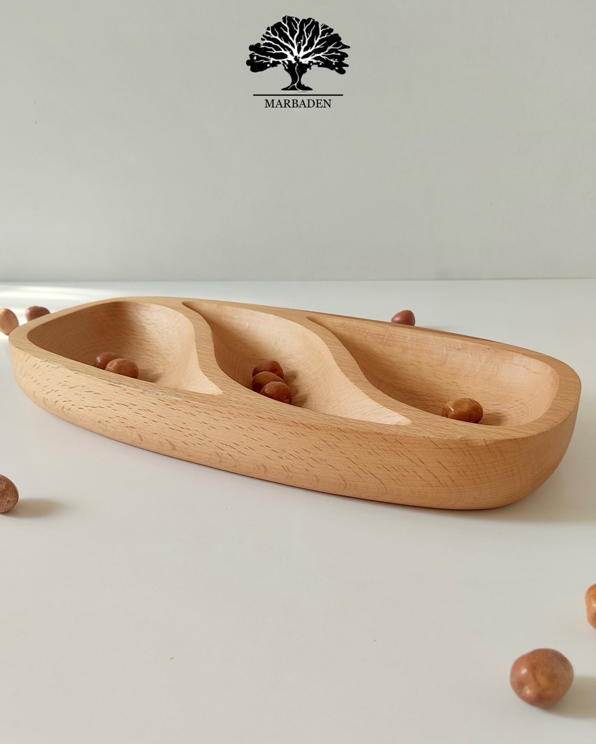 محصول از چوب راش مرغوب ساخته شده؛ چوبی با بافت متراکم، رگههای زیبا و دوام بالا. همین ویژگیها راش را تبدیل به یکی از بهترین گزینهها برای ظروف سرو چوبی کرده است.