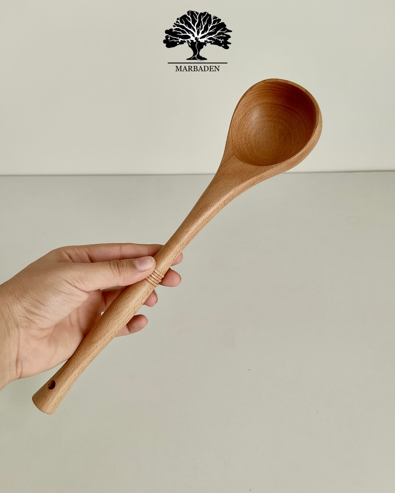 این ملاقه، تبلور سادگی، اصالت و کارایی در آشپزخانه شماست. ساخته شده از چوب راش اروپایی که به دلیل بافت متراکم، استحکام فوقالعاده و رنگ گرم و یکنواخت شهرت جهانی دارد. یک ابزار آشپزی سالم، بیبو و سازگار با محیط زیست که هم برای پخت و پز و هم برای سرو،