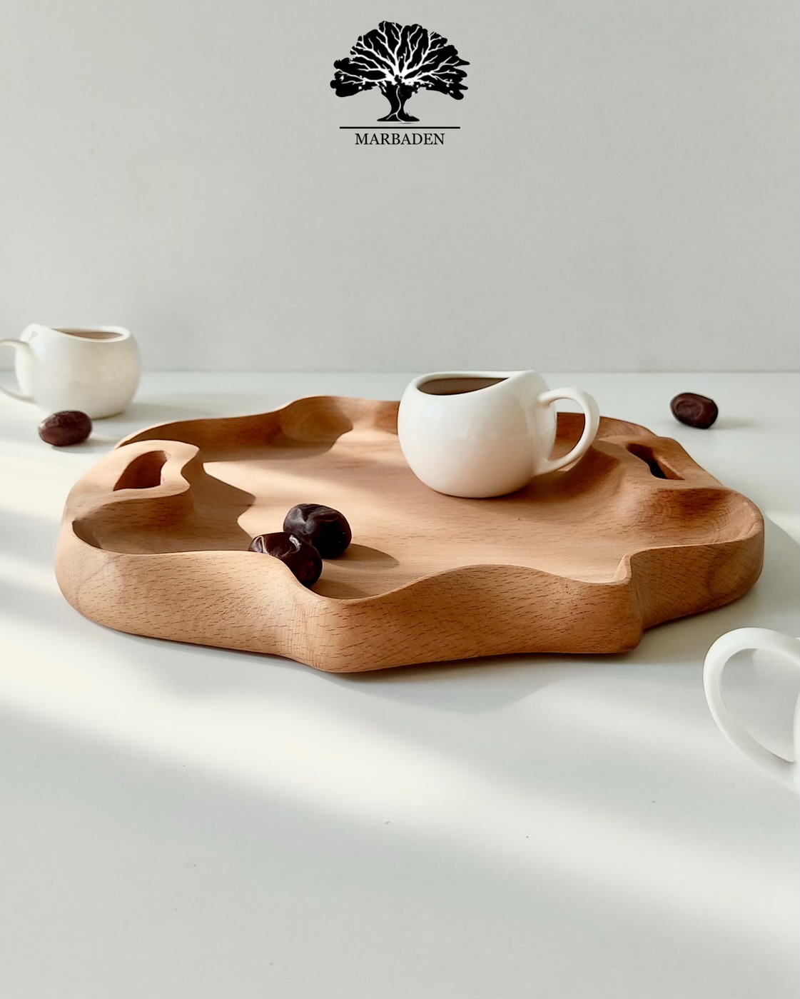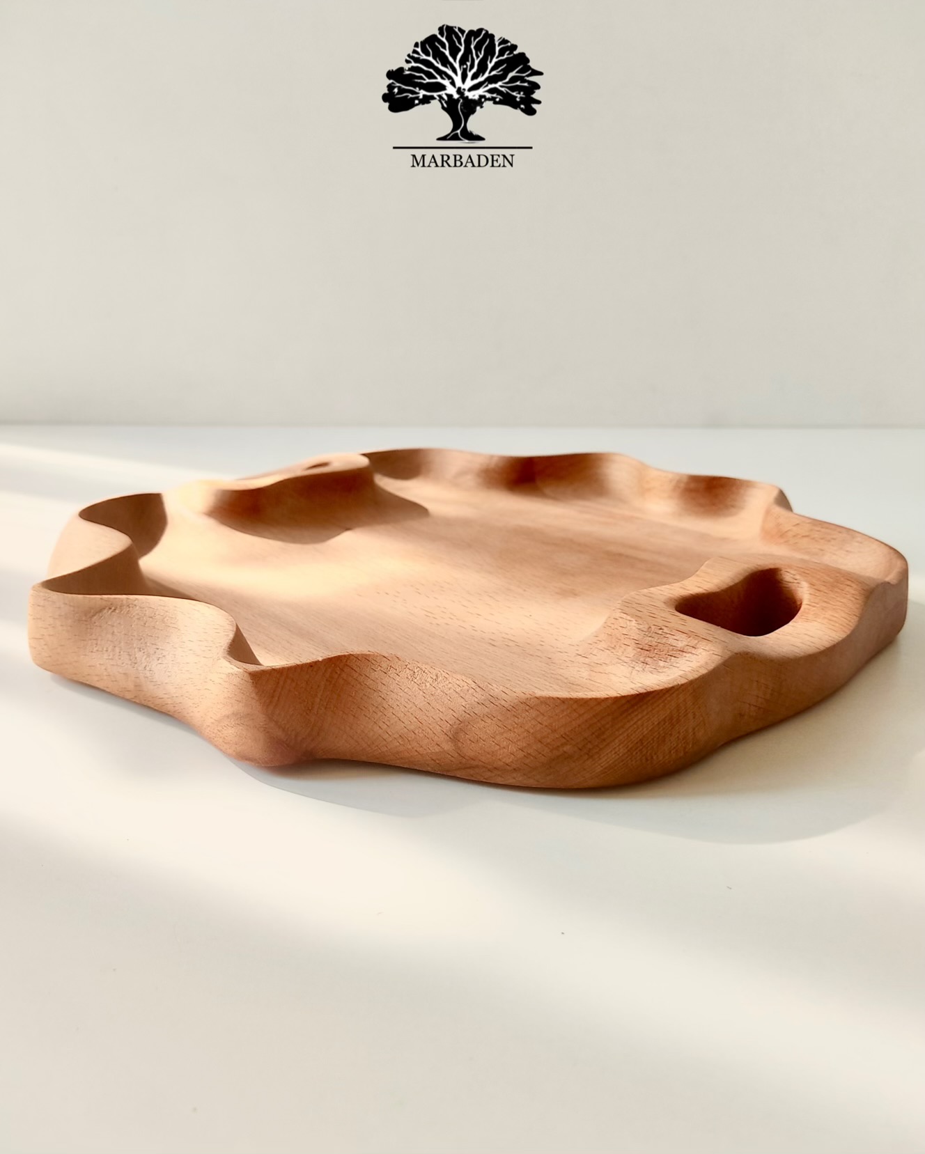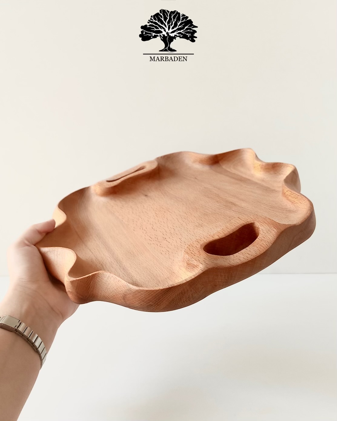 ساختهشده از چوب راش درجهیک، ترکیبی از هنر دست و طراحی خاص است. فرم نامتقارن و ارگانیک این سینی باعث شده یک انتخاب متفاوت، چشمنواز و بسیار مناسب برای سرو چای، دمنوش، شیرینی و پذیراییهای خاص باشد. این سینی هم کاربردی است و هم مانند یک قطعه دکور چوبی روی میز میدرخشد.