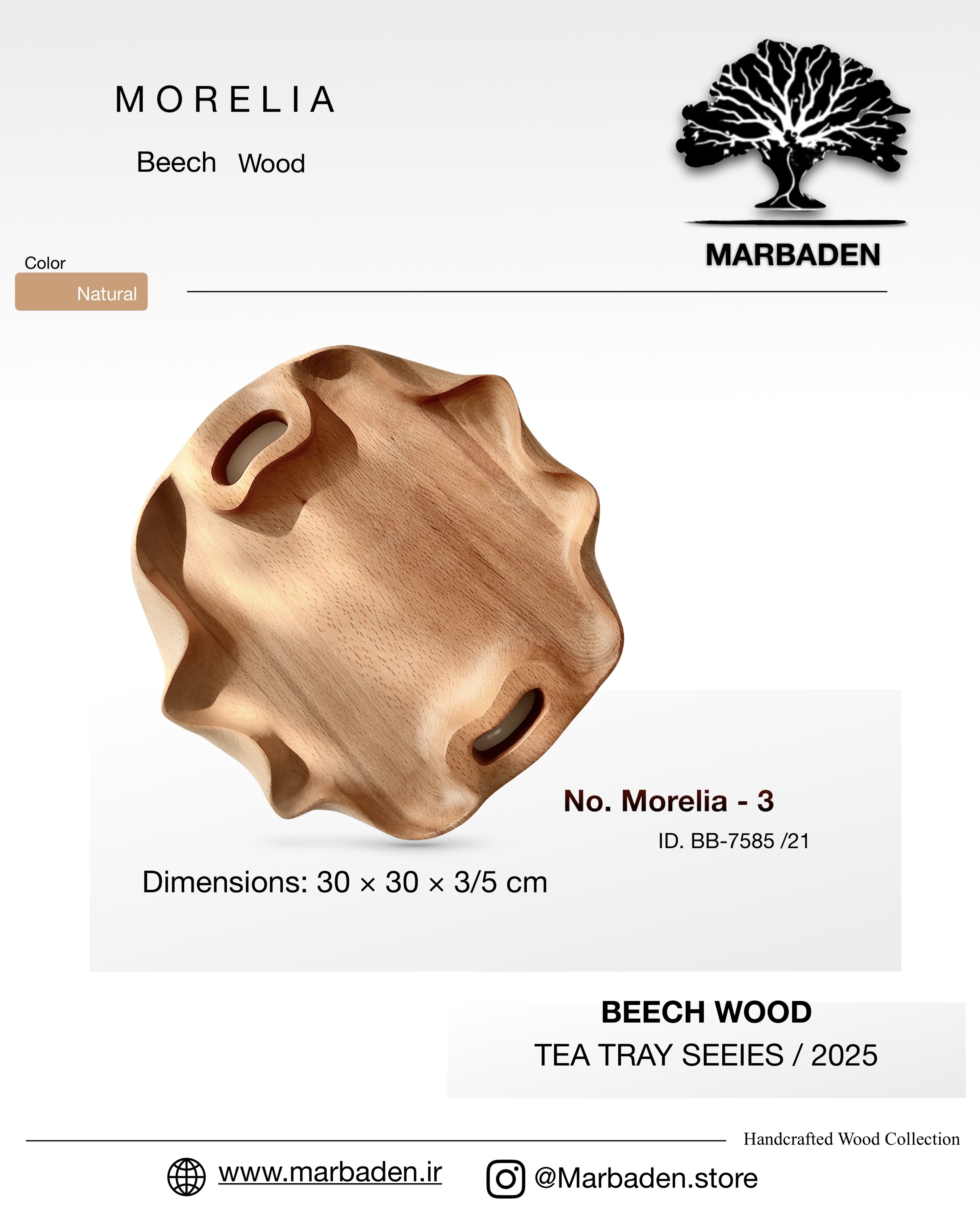 سینی چای مدل دفرمه دستساز (چوب راش) morelia-3