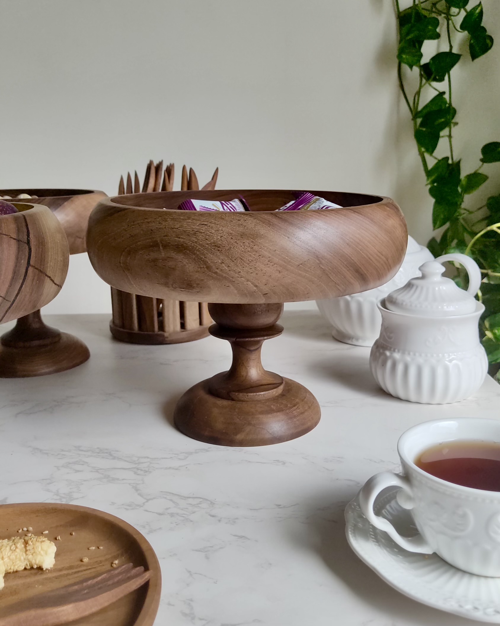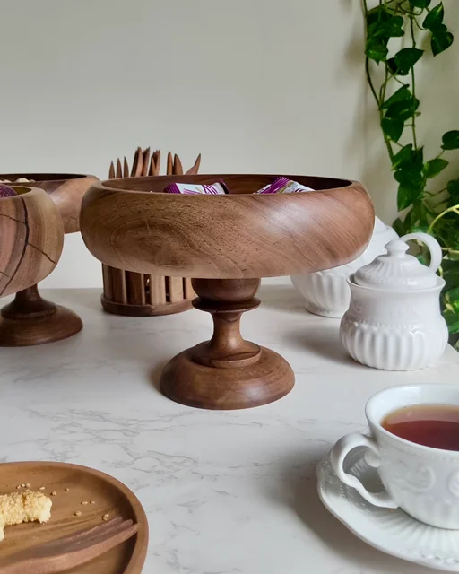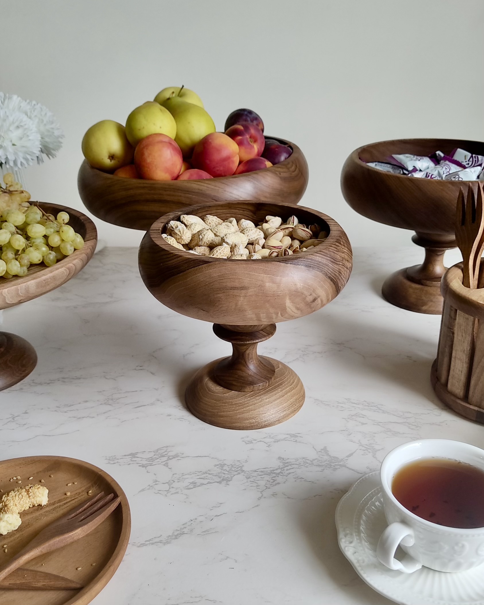 با سرویس پذیرایی 4 پارچه چوب گردو پایه بلند MONTREAL، اصالت و شیکپوشی را به میز خود بیاورید. طراحی بینظیر و چوب گردوی با کیفیت، این سرویس را به انتخابی ایدهآل برای مهمانیها و دورهمیهای شما تبدیل کرده است. تجربهای لوکس و مجلل، که نظر هر مهمانی را جلب میکند و زیبایی را به خانهتان میآورد.