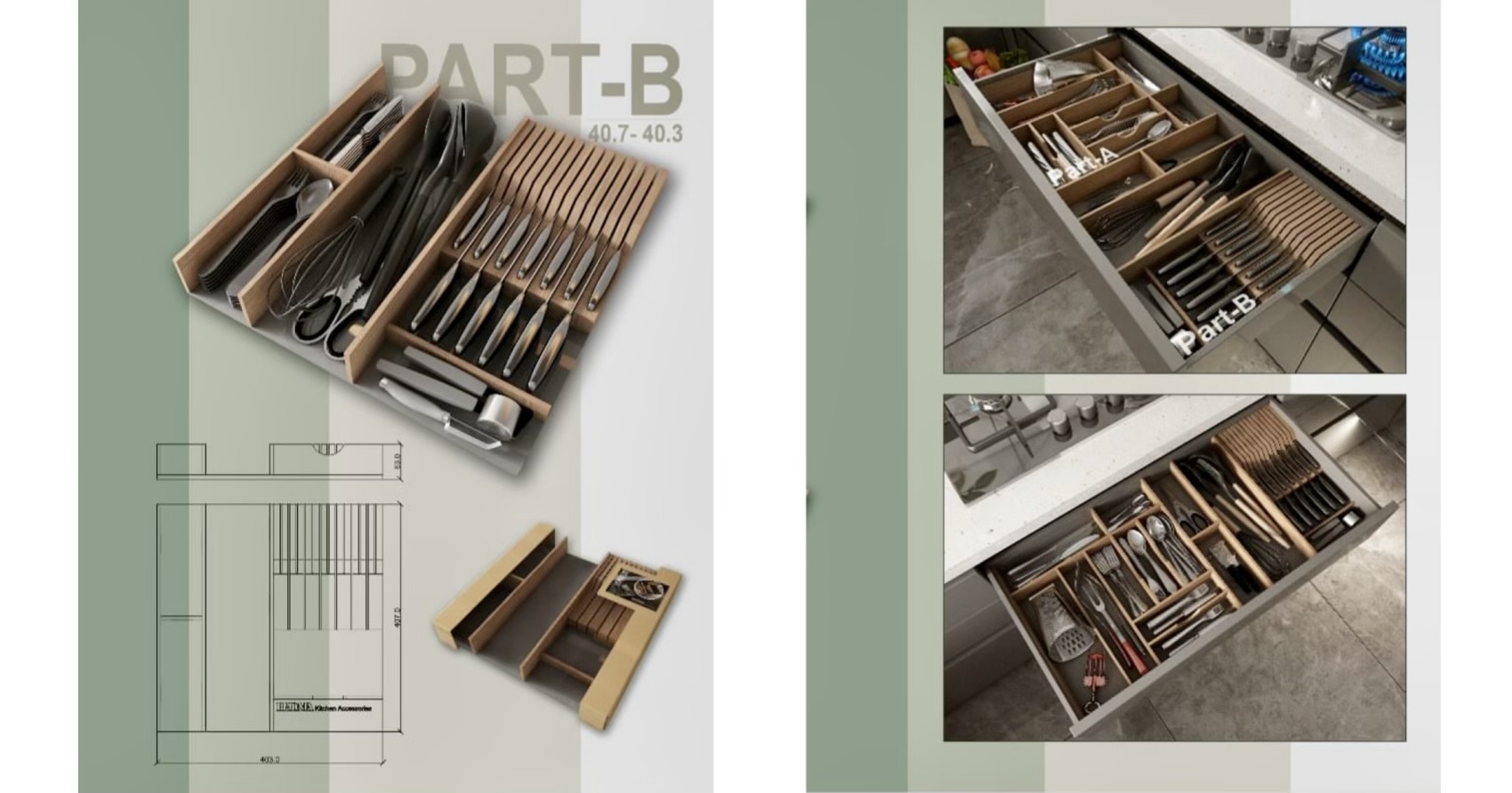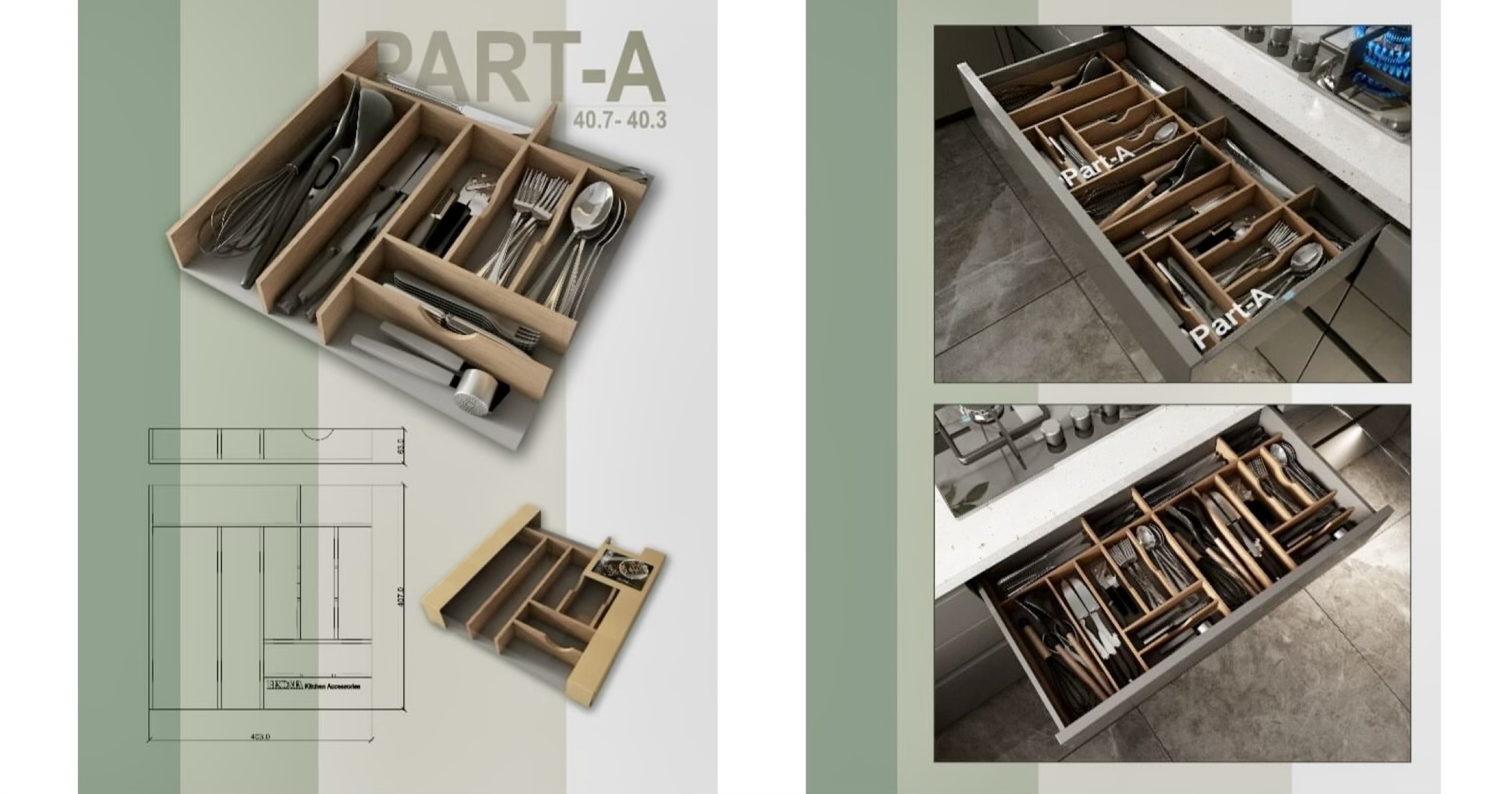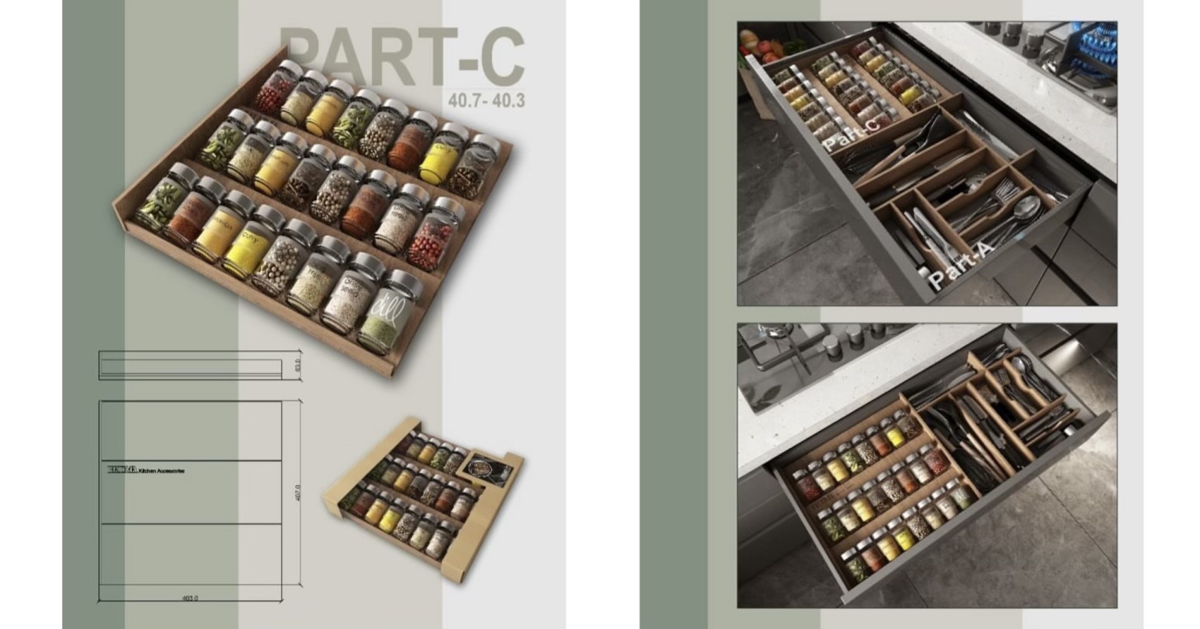 یکی از مزیت های بزرگ این محصولات قابلیت ایجاد ترکیبات متنوع بر اساس نیاز افراد مختلف در چیدمان تجهیزات داخل کشو آشپزخانه است ،