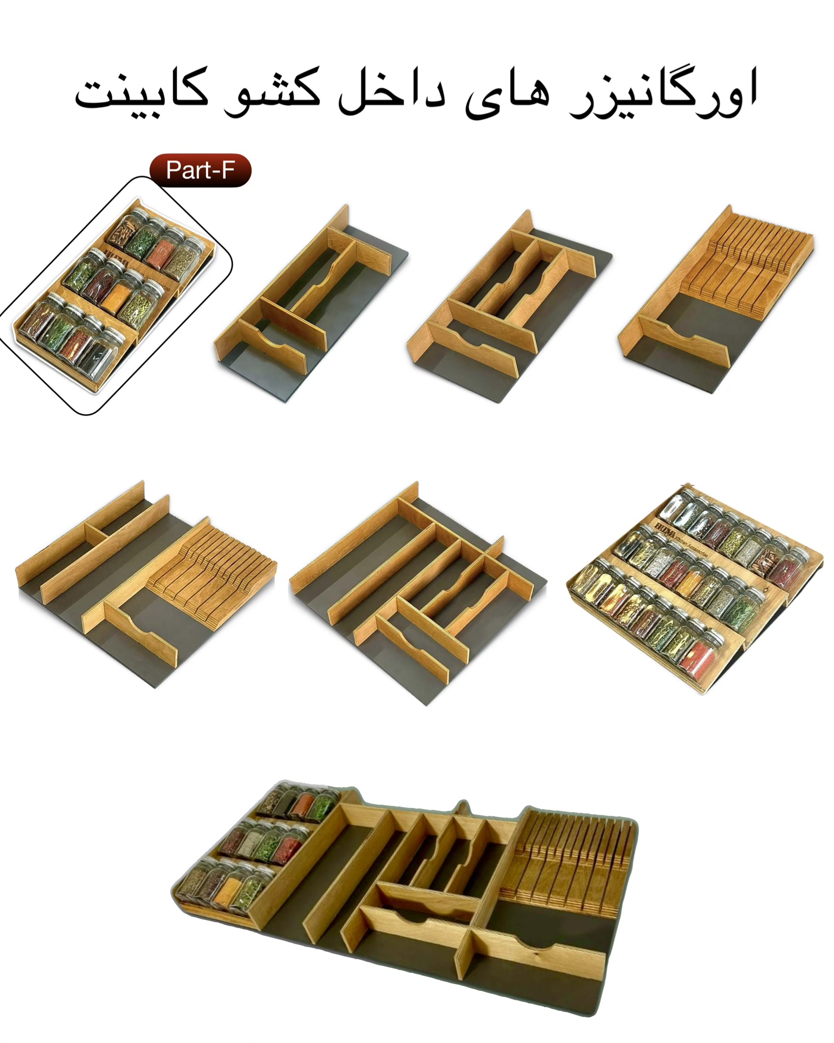 (مخصوص محل قرار گیری کارد های بزرگ و کوچک آشپزخانه ) 13 جای کارد، (ترکیب پارت A و D و E) عکس ⬇️
