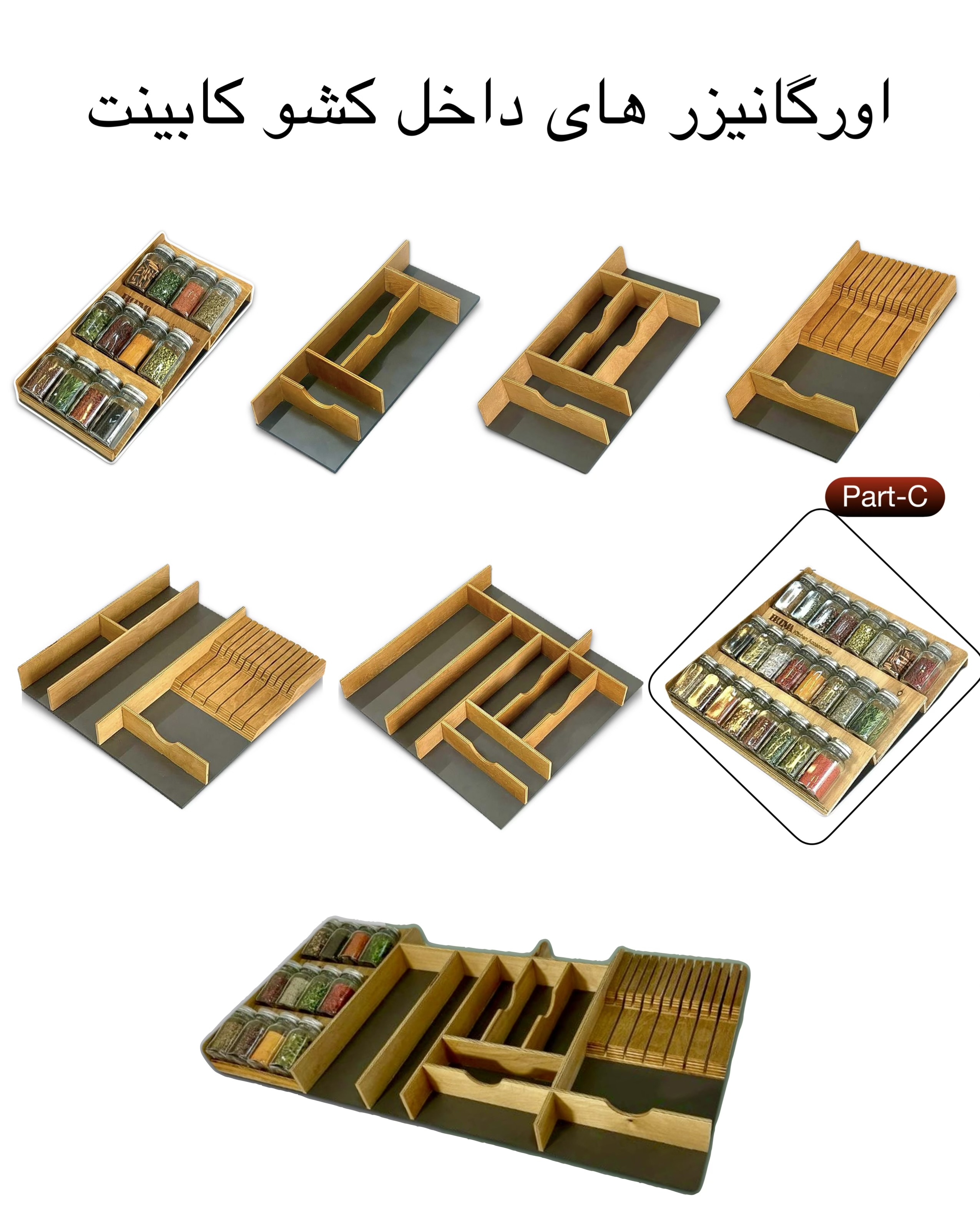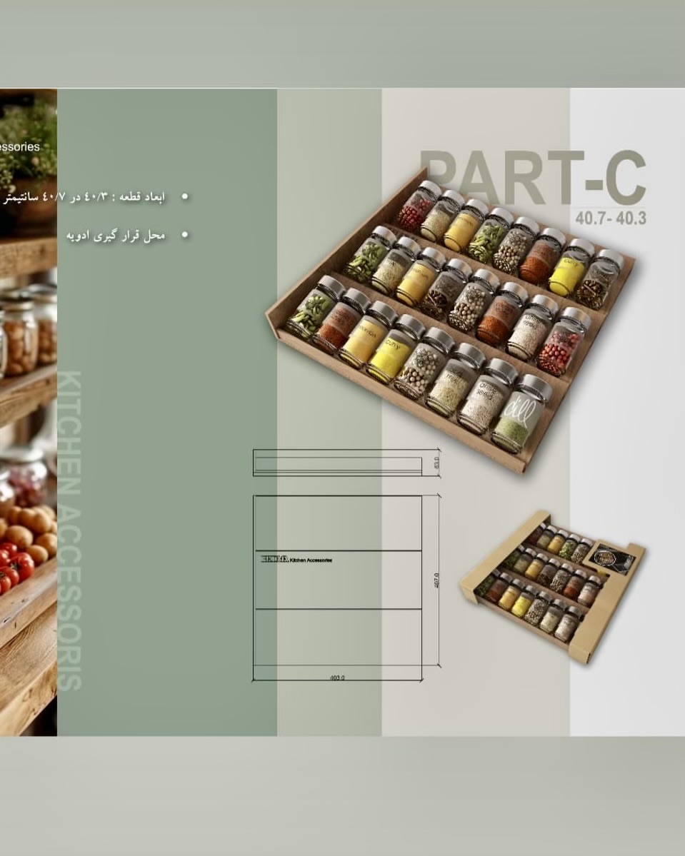 • سازماندهی جامع و کامل کلکسیون ادویه، سبزیجات خشک و زعفران داخل کشو.