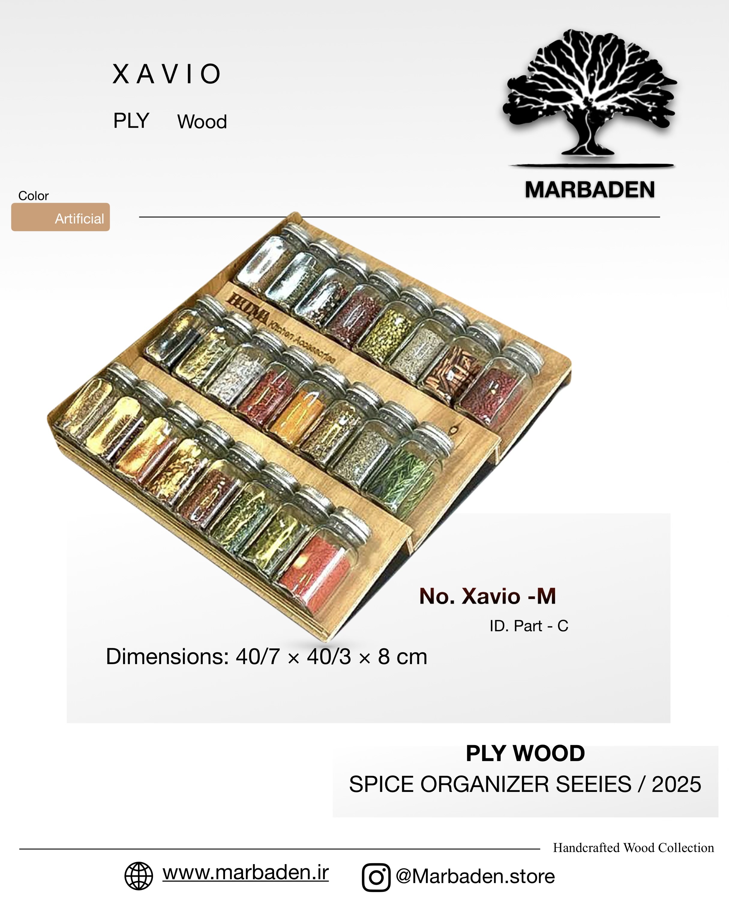 شامل استند چوبی مقاوم پلای وود و ۲۴ شیشه ادویه استاندارد مک کارتی با کیفیت برتر.