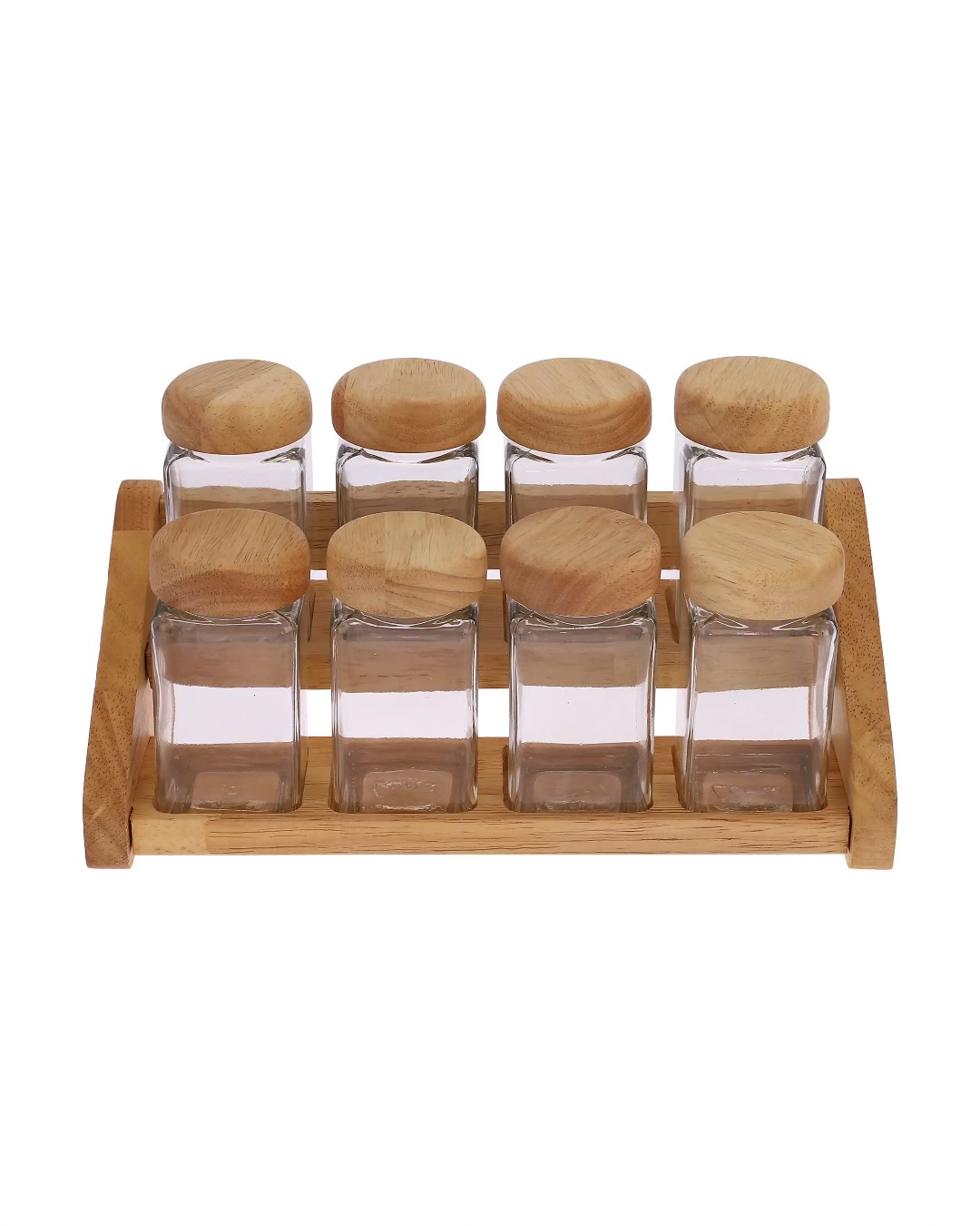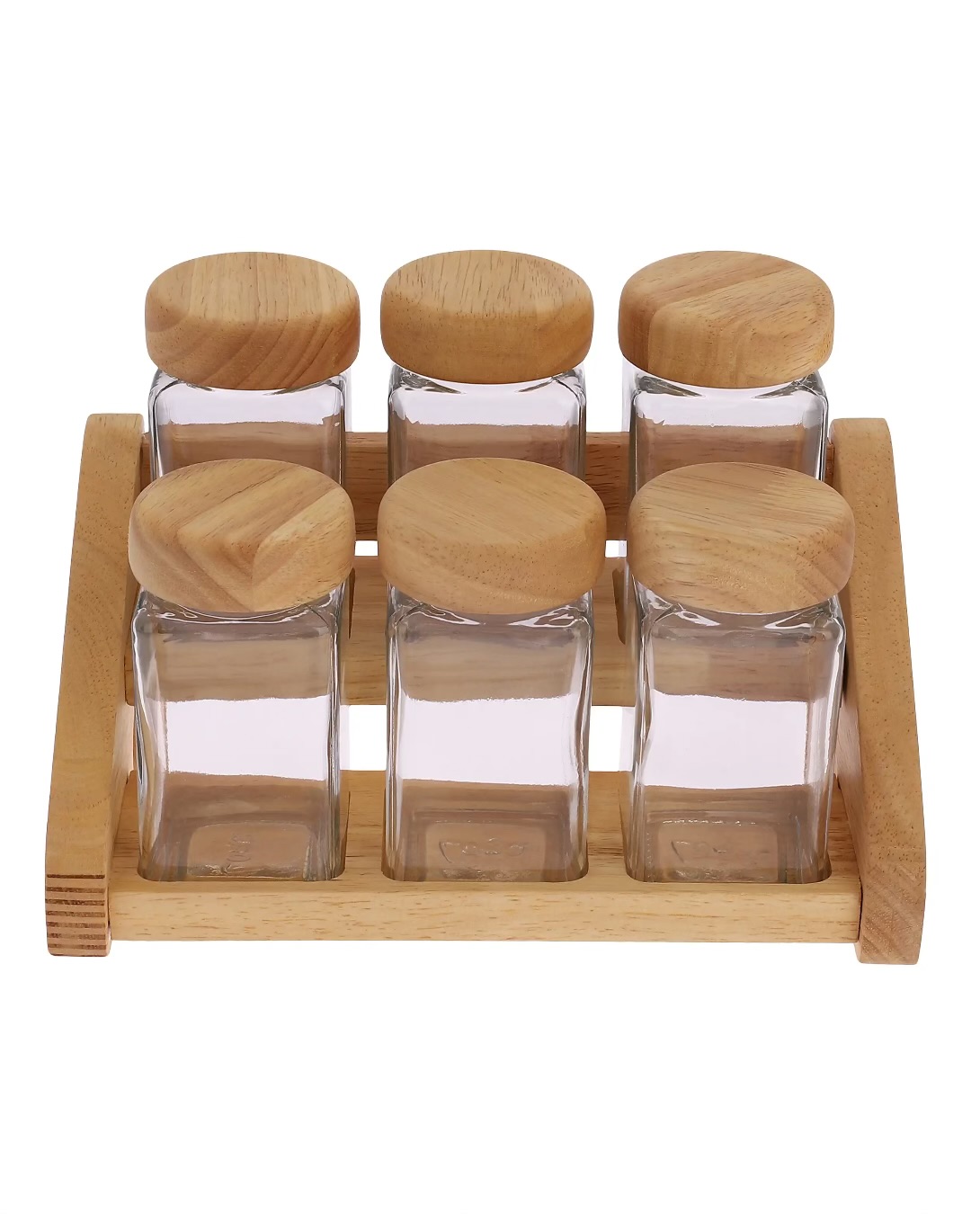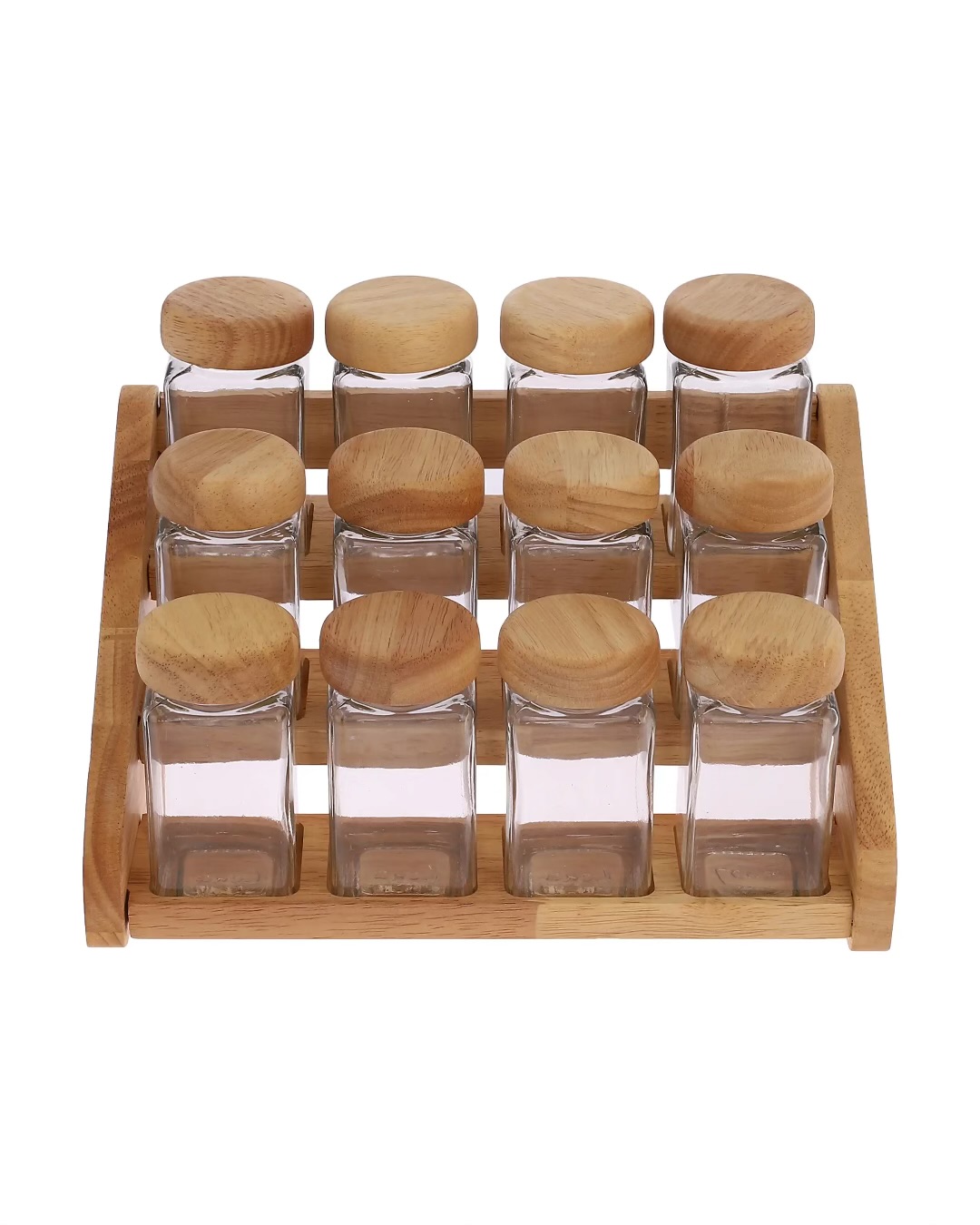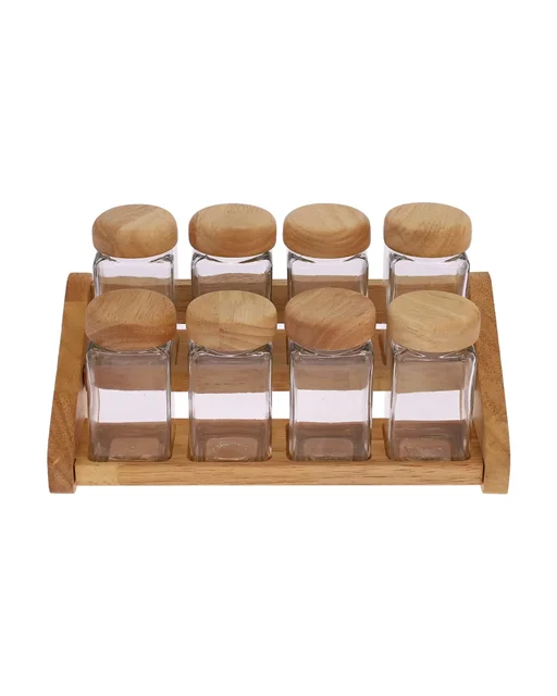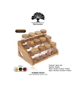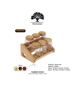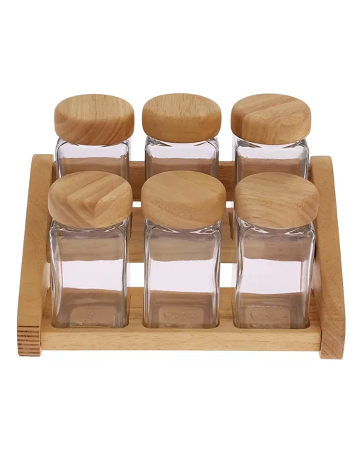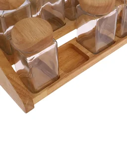🧂 ست جای ادویه سه مدل (۷، ۹ و ۱۳ پارچه) چوب رابِر و شیشه شفاف
