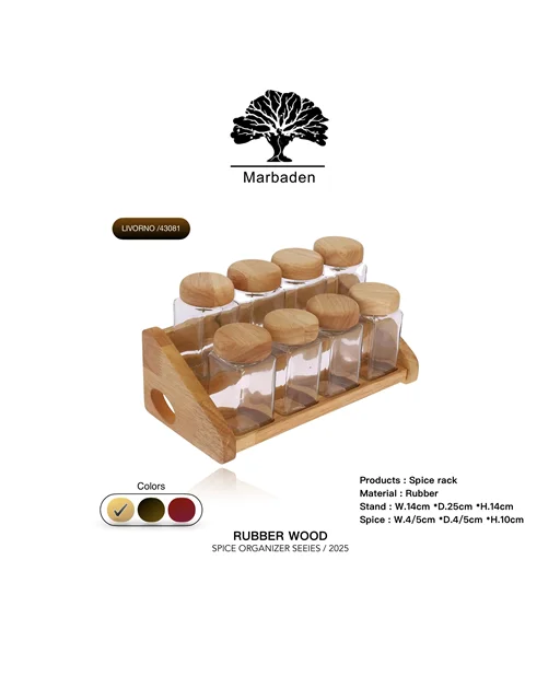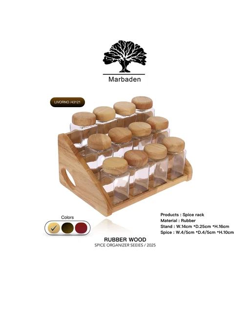 دربها دارای حالت نمکپاشی (پودرپاش) بوده و استند چوبی محکم، ادویهها را بهصورت منظم و در دسترس نگه میدارد.