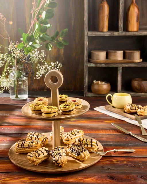 شیرینی خوری دو طبقه گرد چوبی اماهوم ROUND STAND/2