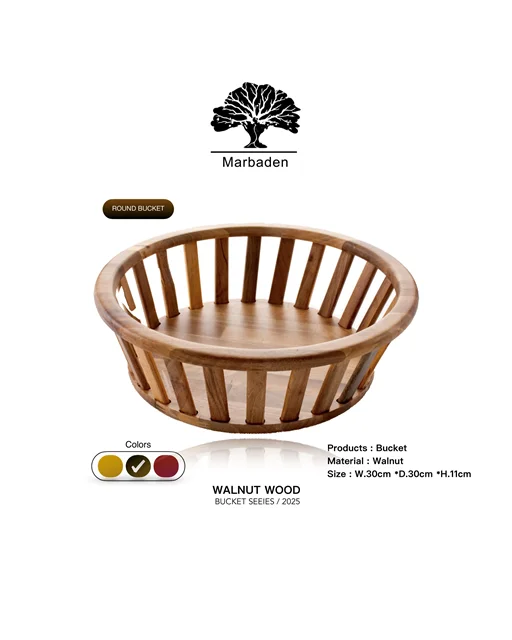 سبد دستساز مدل گرد از چوب طبیعی گردو،