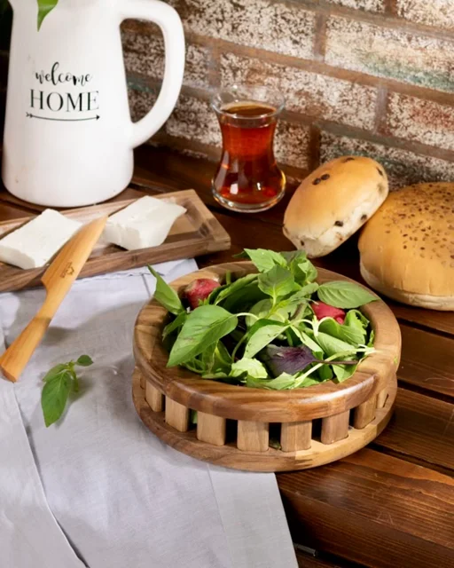 از چوب طبیعی گردو، طراحیشده برای استفاده روزمره در آشپزخانه و میز پذیرایی. ترکیبی از سادگی، اصالت و کارایی برای نظم و زیبایی در چیدمان خانه.