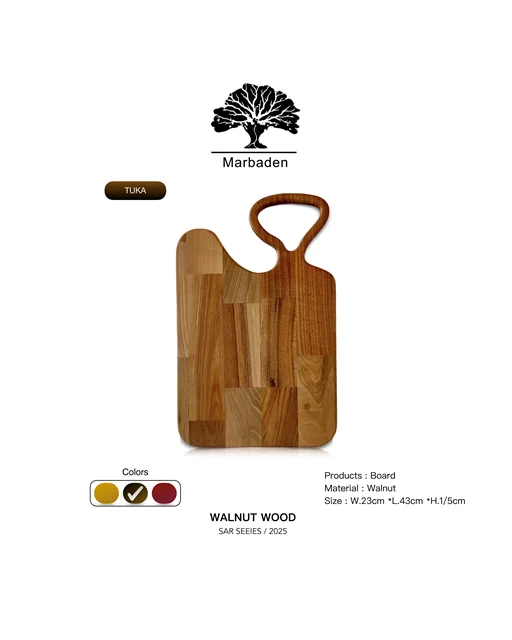 با تخته روستیک توکا اماهوم TUKA، لذت آشپزی و سرو غذا را به اوج برسانید! ساخته شده از چوب گردوی باکیفیت، این تخته آشپزخانه، برشی محکم و مقاوم را تضمین میکند. طراحی زیبا و منحصربهفرد آن، هر فضایی را گرم و دلپذیر میسازد. همین حالا تجربهای متفاوت را به آشپزخانه خود بیاورید!