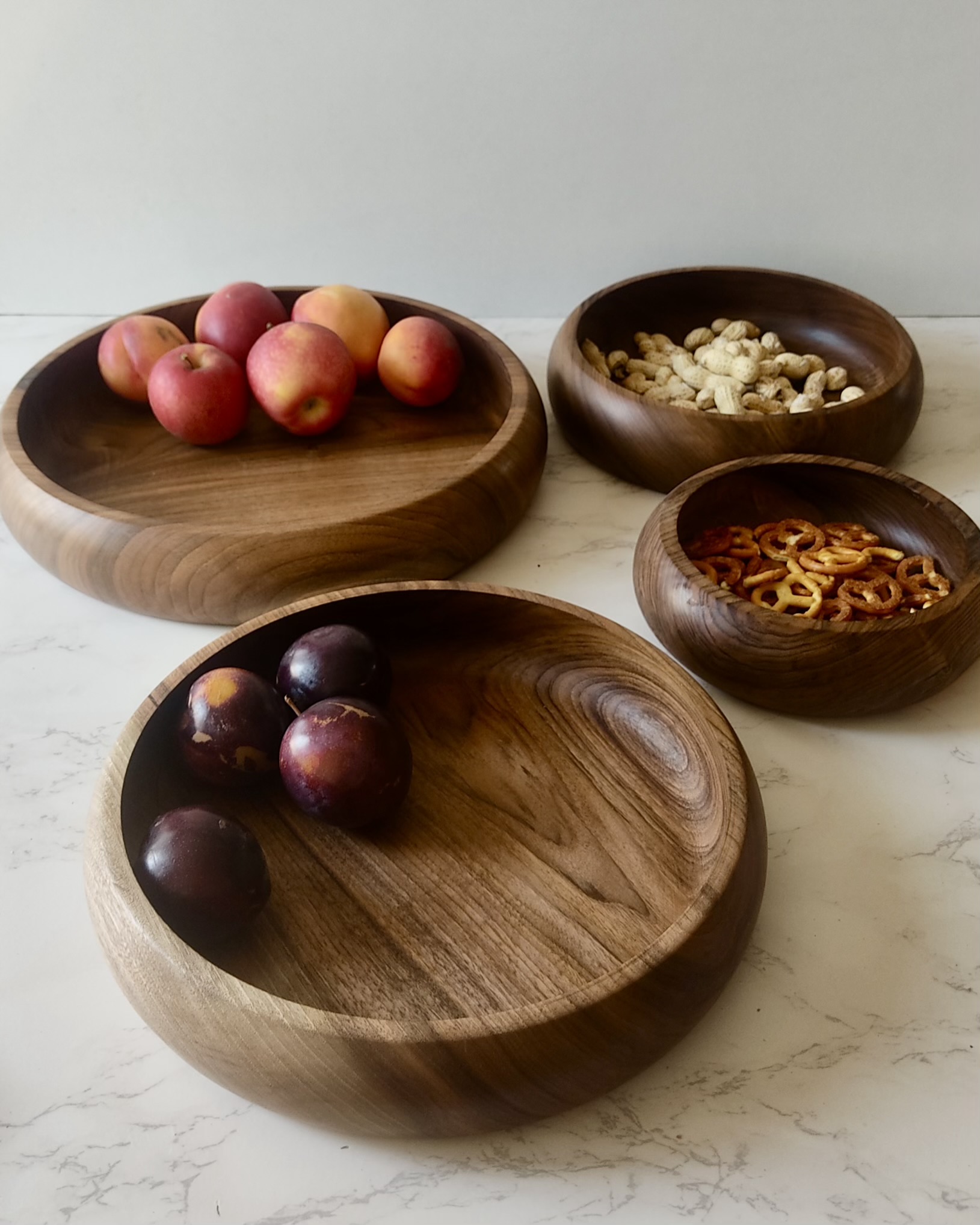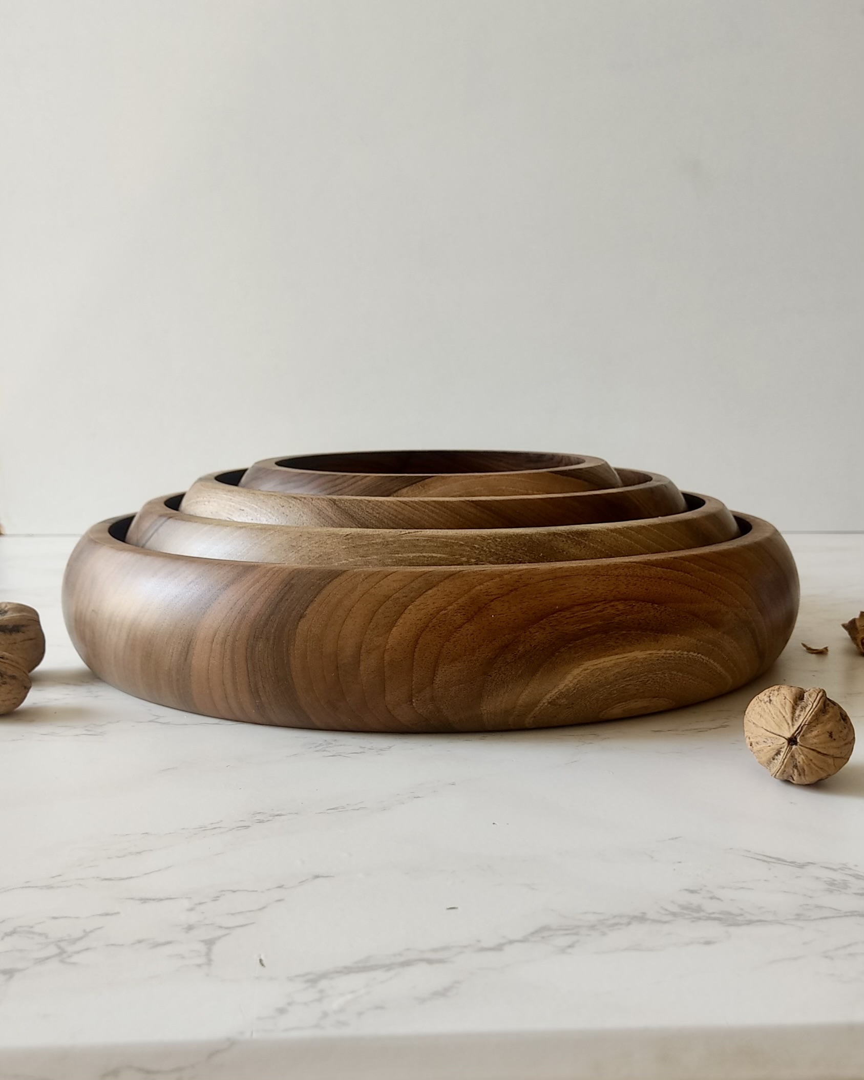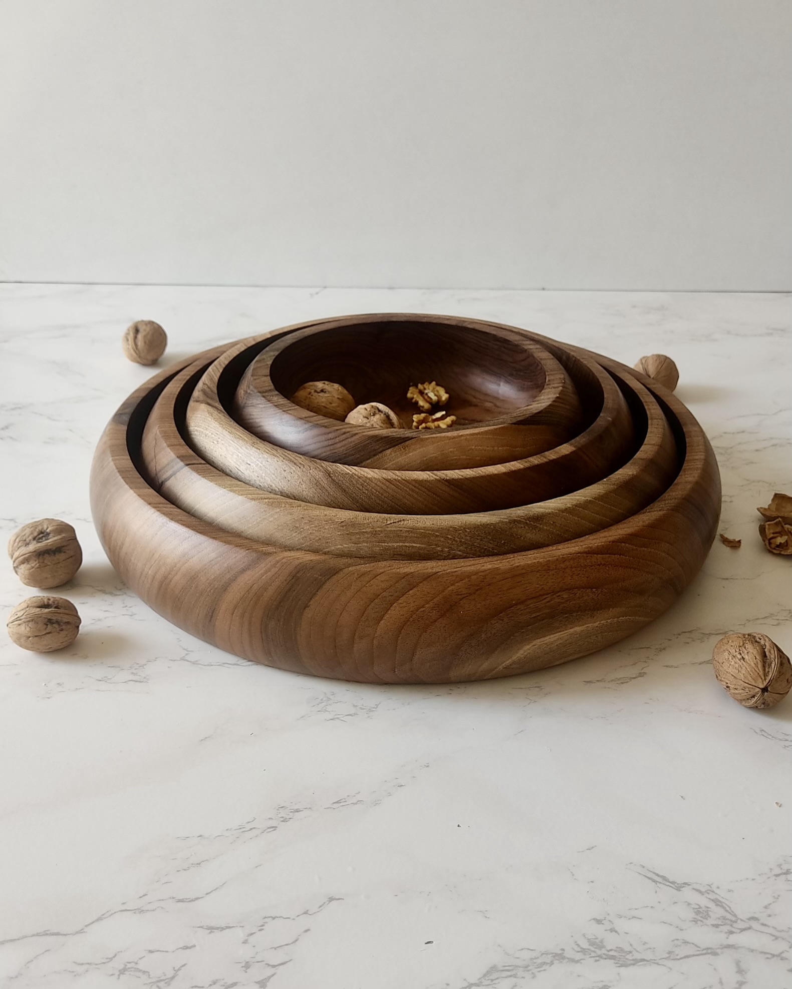 چهار سایز کاسه چوب گردو مدل خمره ای