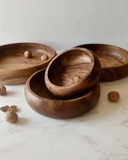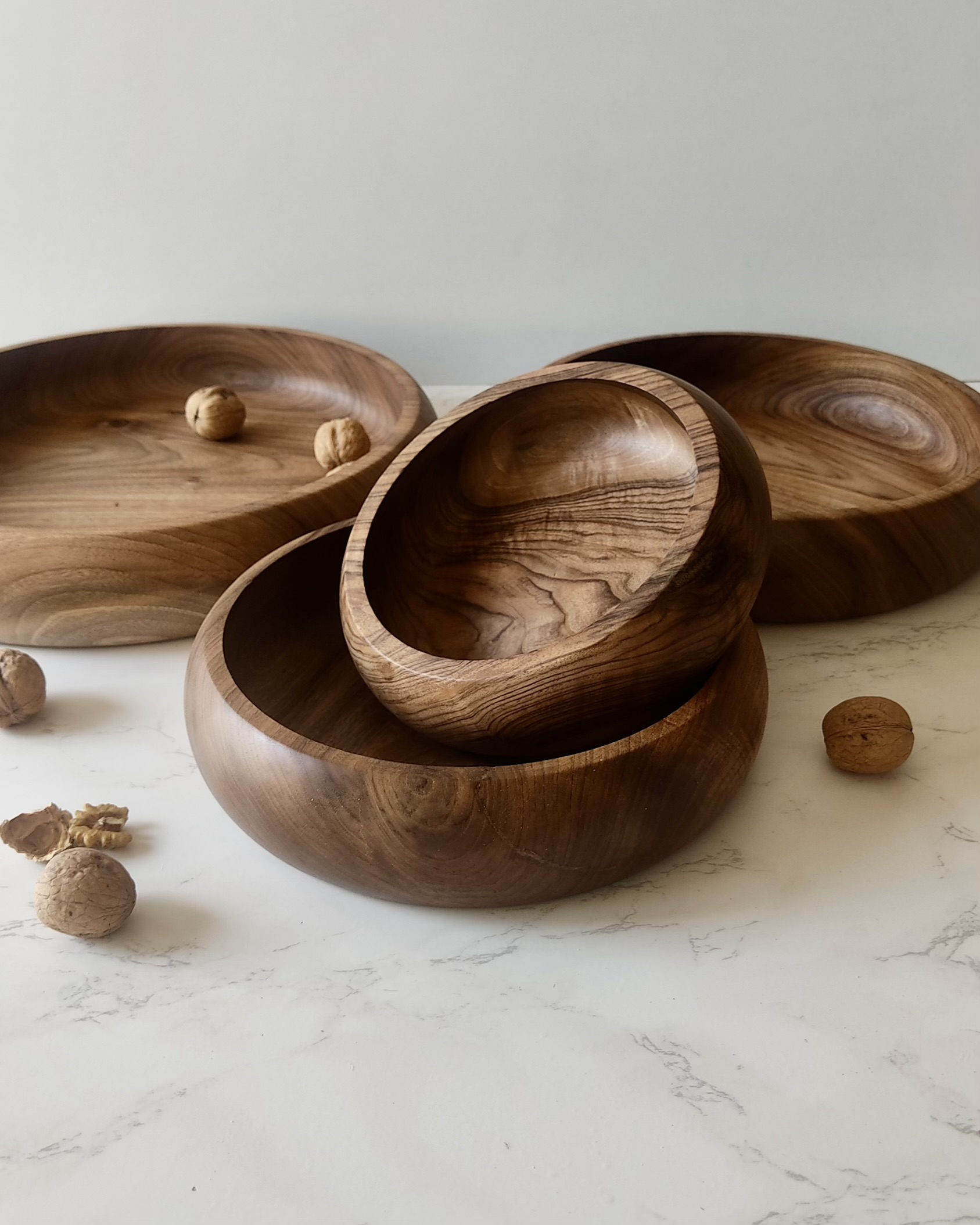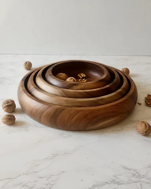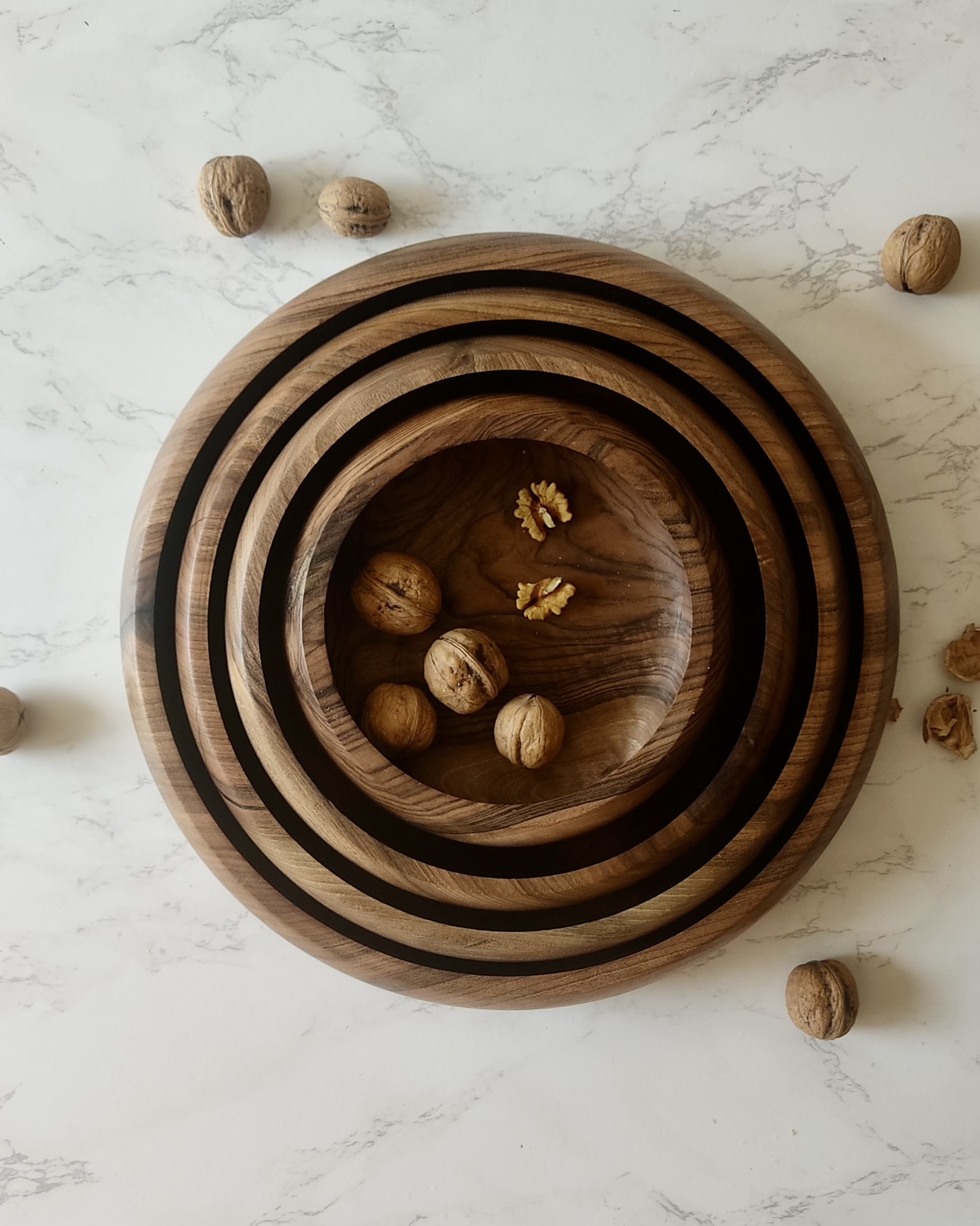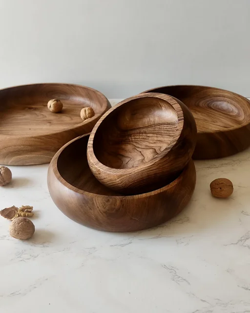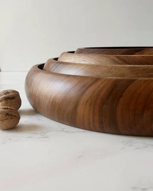 - رگهها و بافت طبیعی چوب گردو در هر کاسه