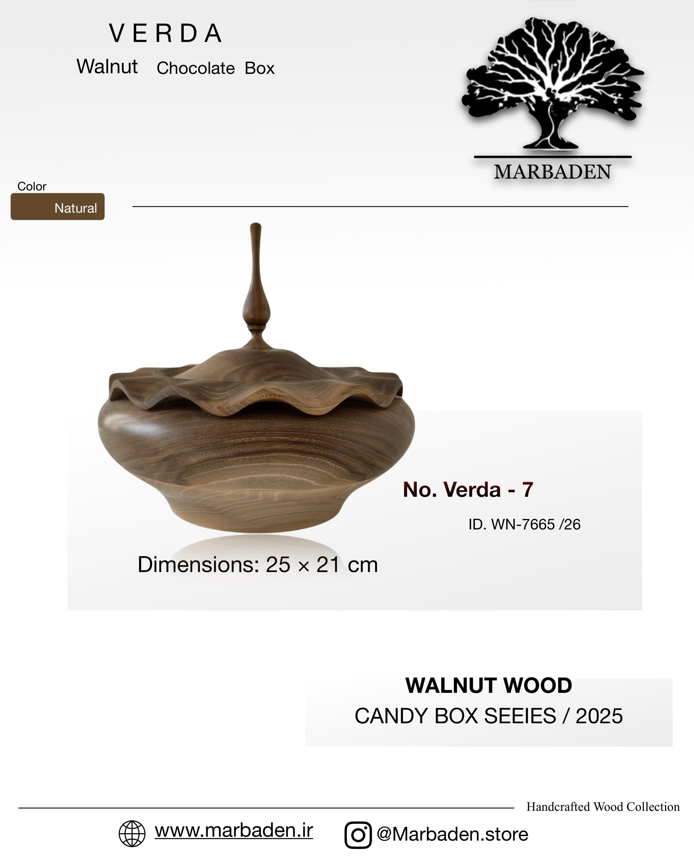شکلات خوری درب دار چوبی قطر 25 ارتفاع 11 (چوب گردو) 7-Verda