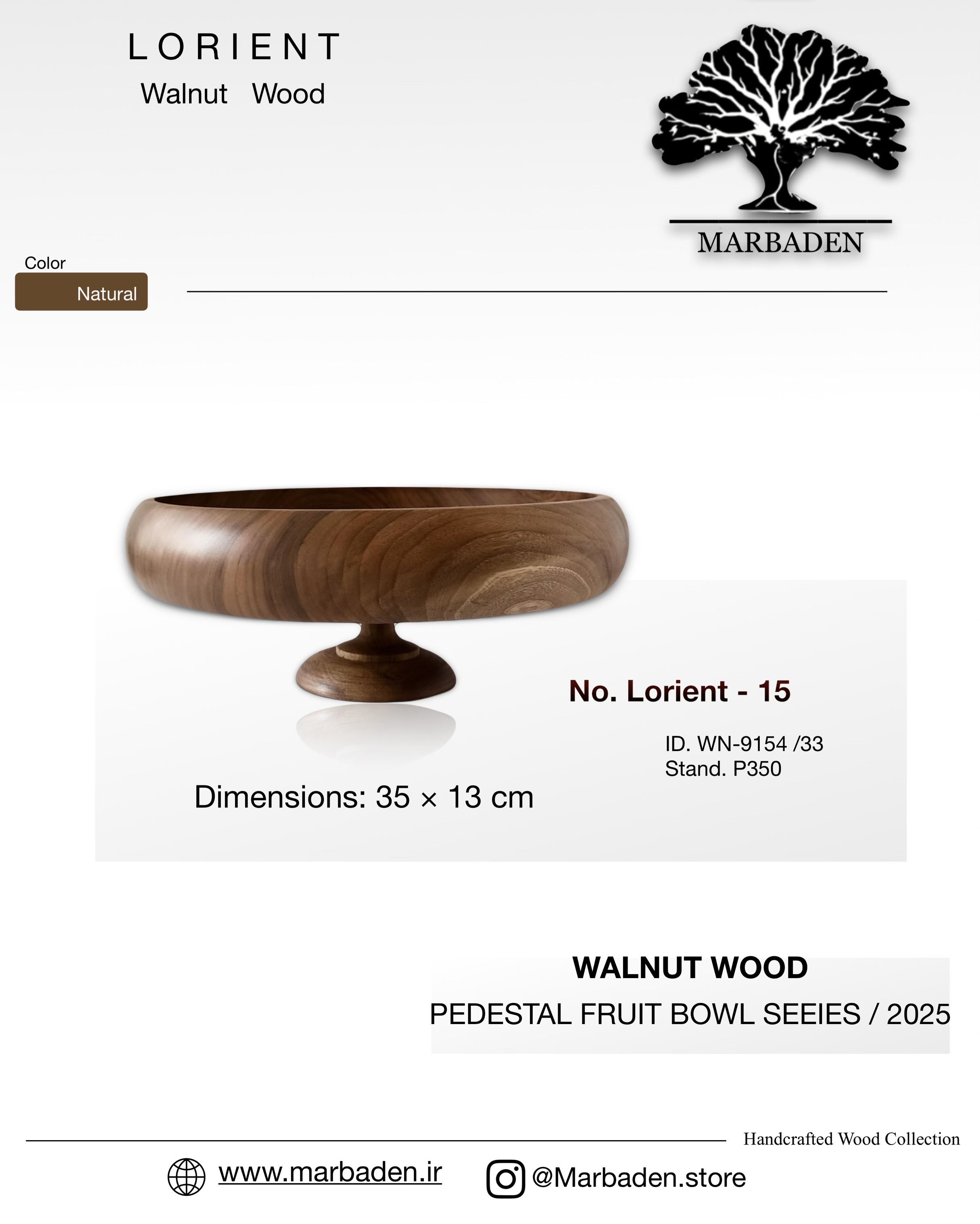 میوه خوری مدل خمره ای پایه کوتاه قطر 35 (چوب گردو) Lorient-15