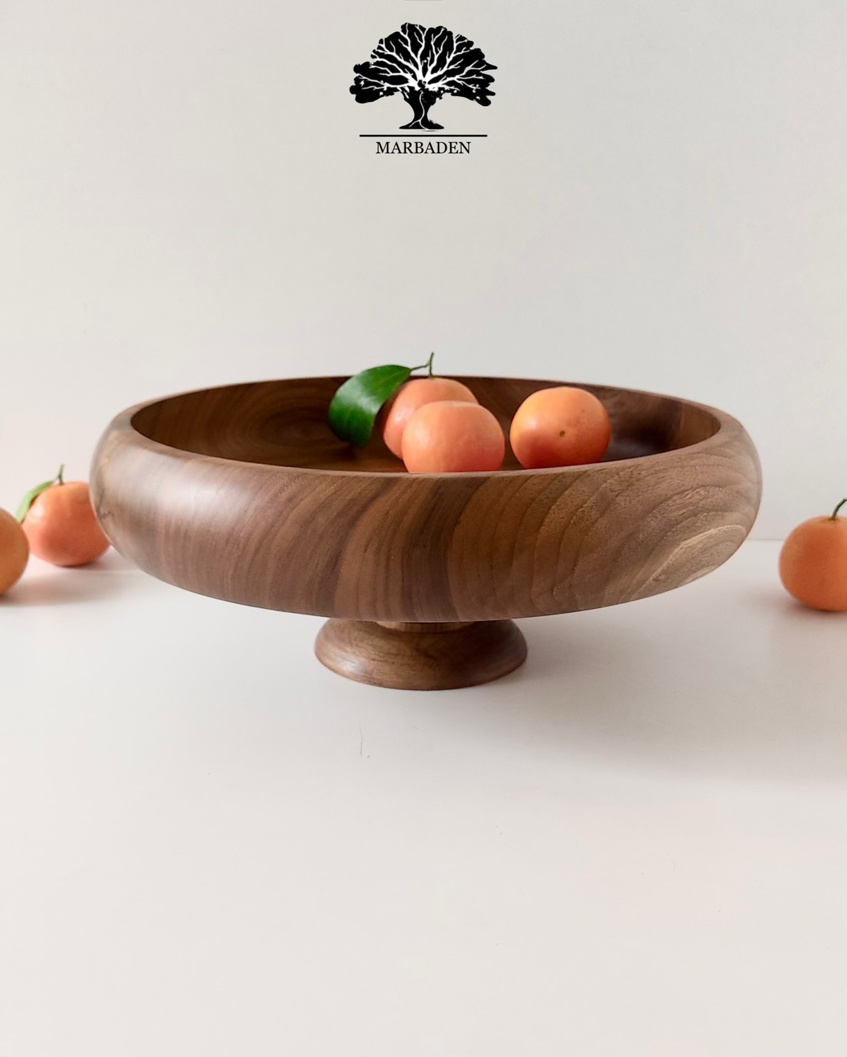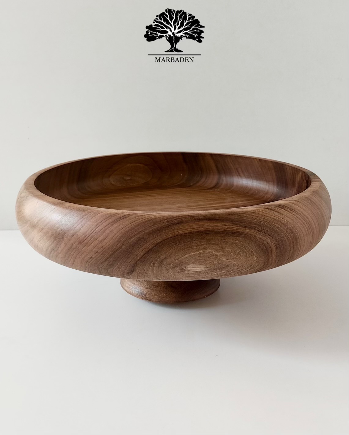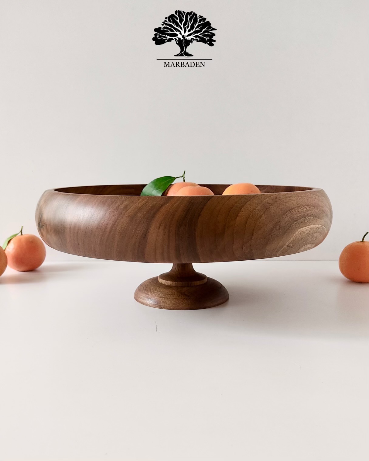 میوهخوری چوب گردو – مدل خمرهای با پایه کوتاه | قطر ۳۵ سانتیمتر