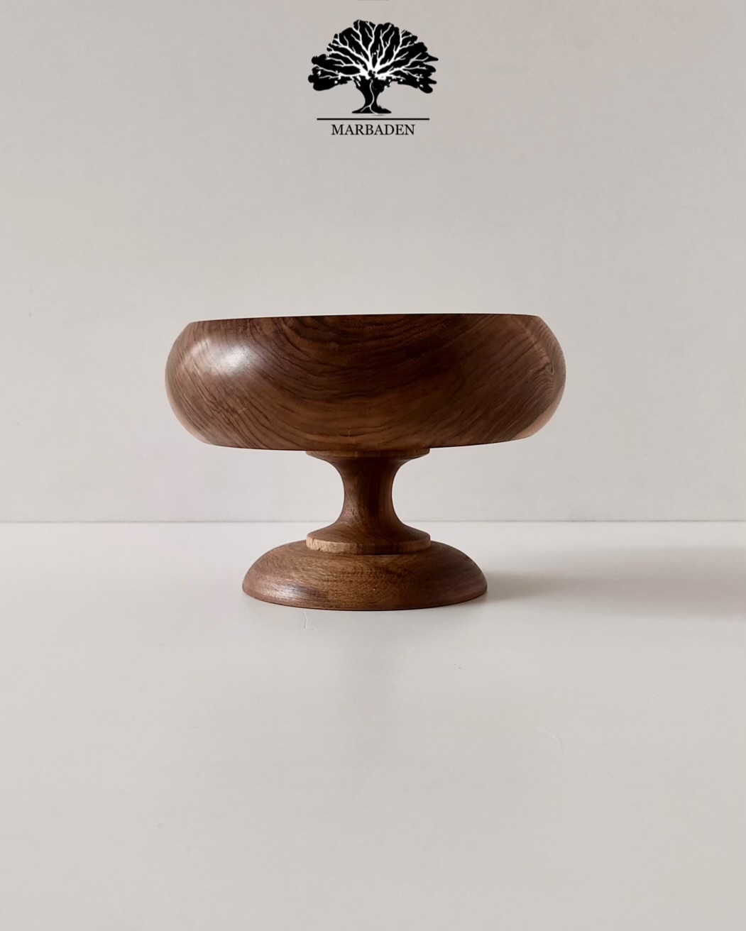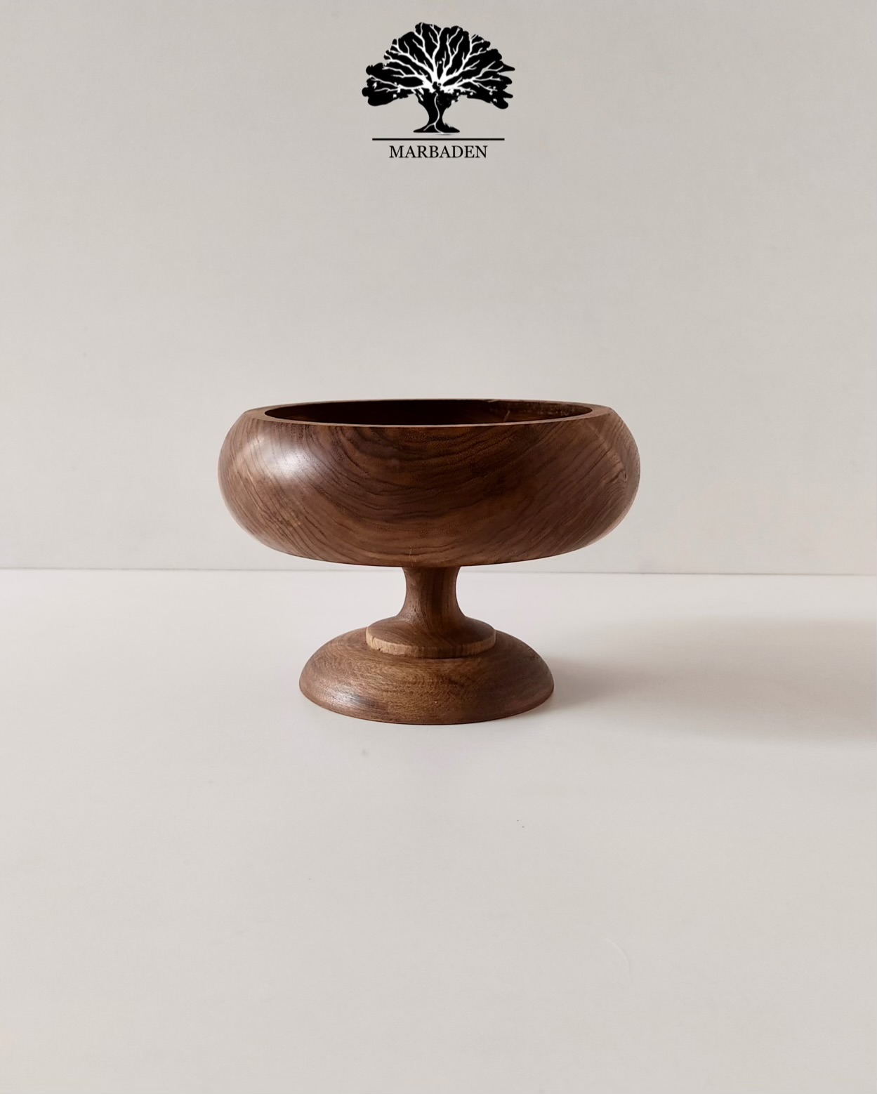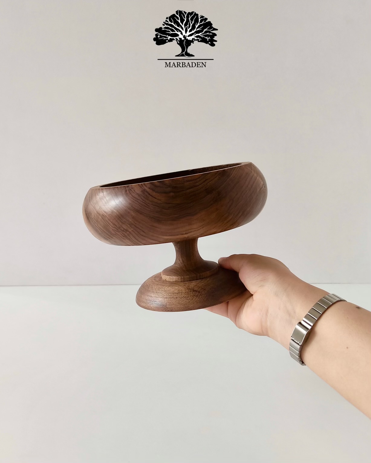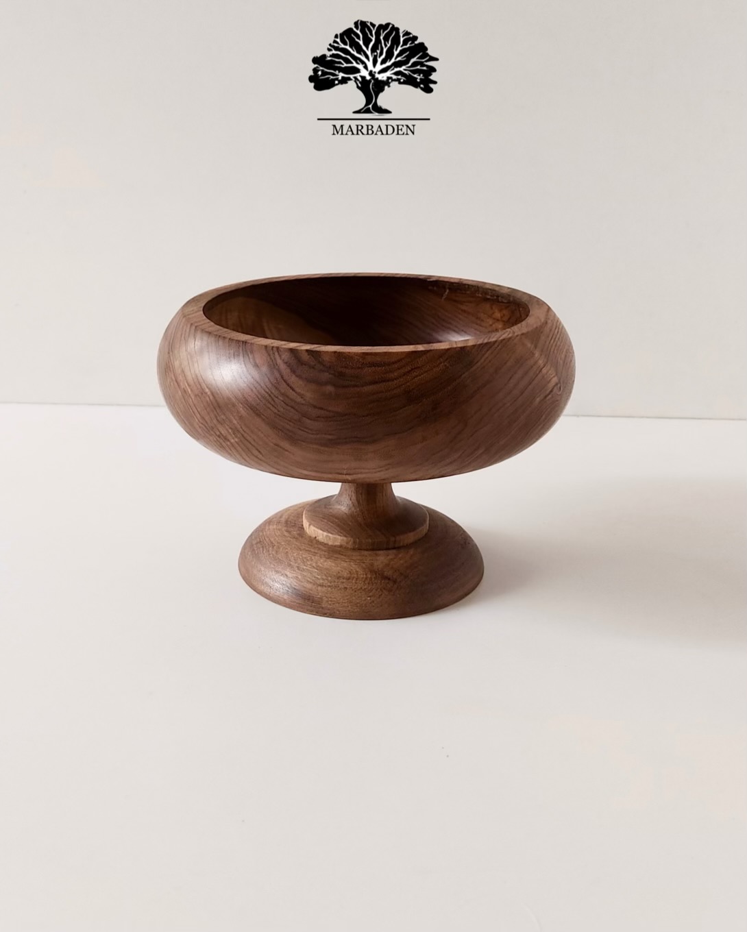 کاسه پایهدار چوب گردو – مدل خمرهای | قطر ۲۰ سانتیمتر