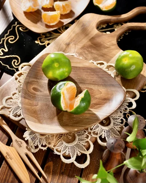 از چوب طبیعی گردو، با طراحی خاص و مینیمال برای پذیرایی مدرن. مناسب برای سرو دسر، کیک، میوه و میانوعدهها؛ ترکیبی از اصالت چوب و زیبایی طراحی هندسی.