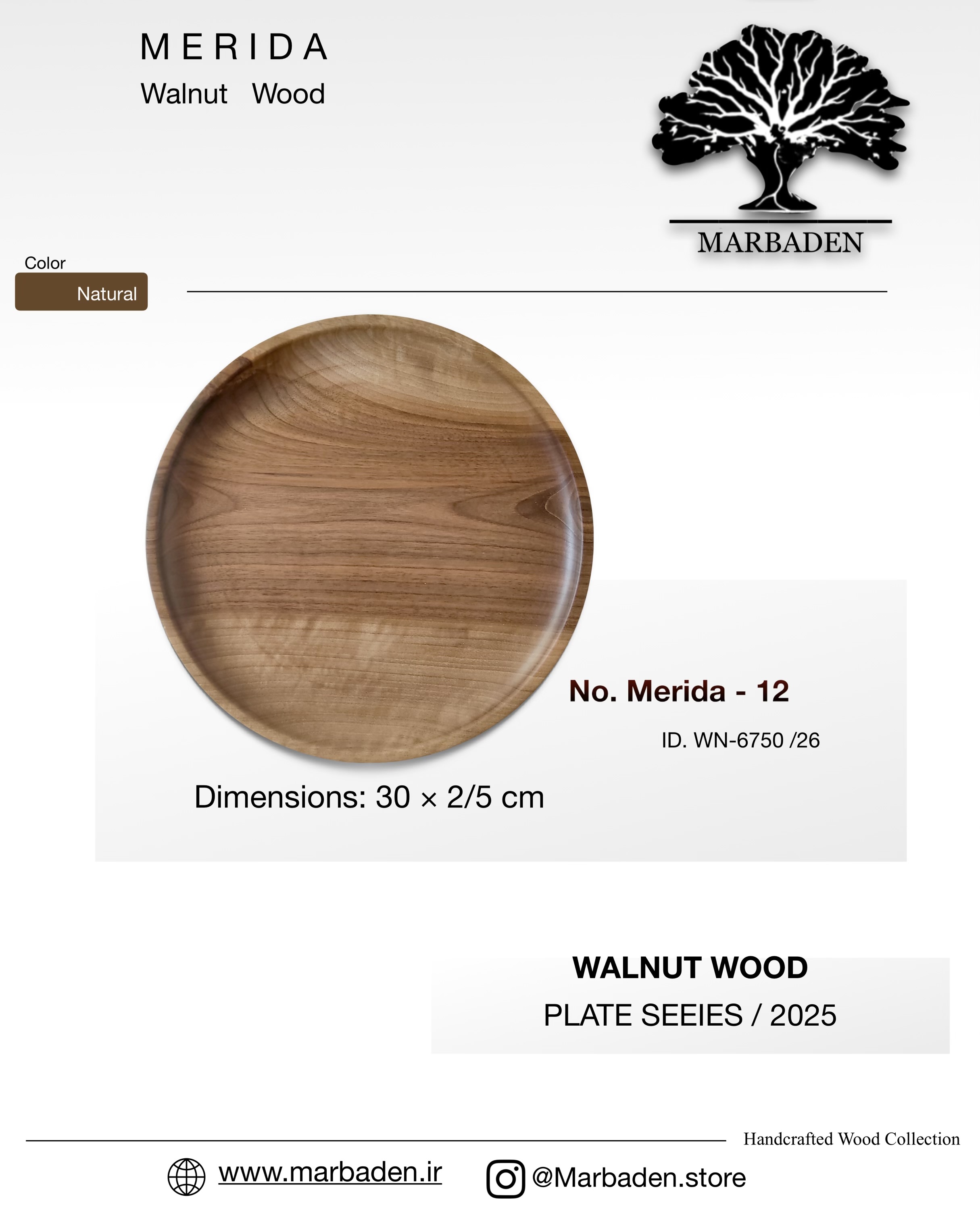 بشقاب چوبی مدل گرد قطر 30 سانتیمتر (چوب گردو) Merida -12